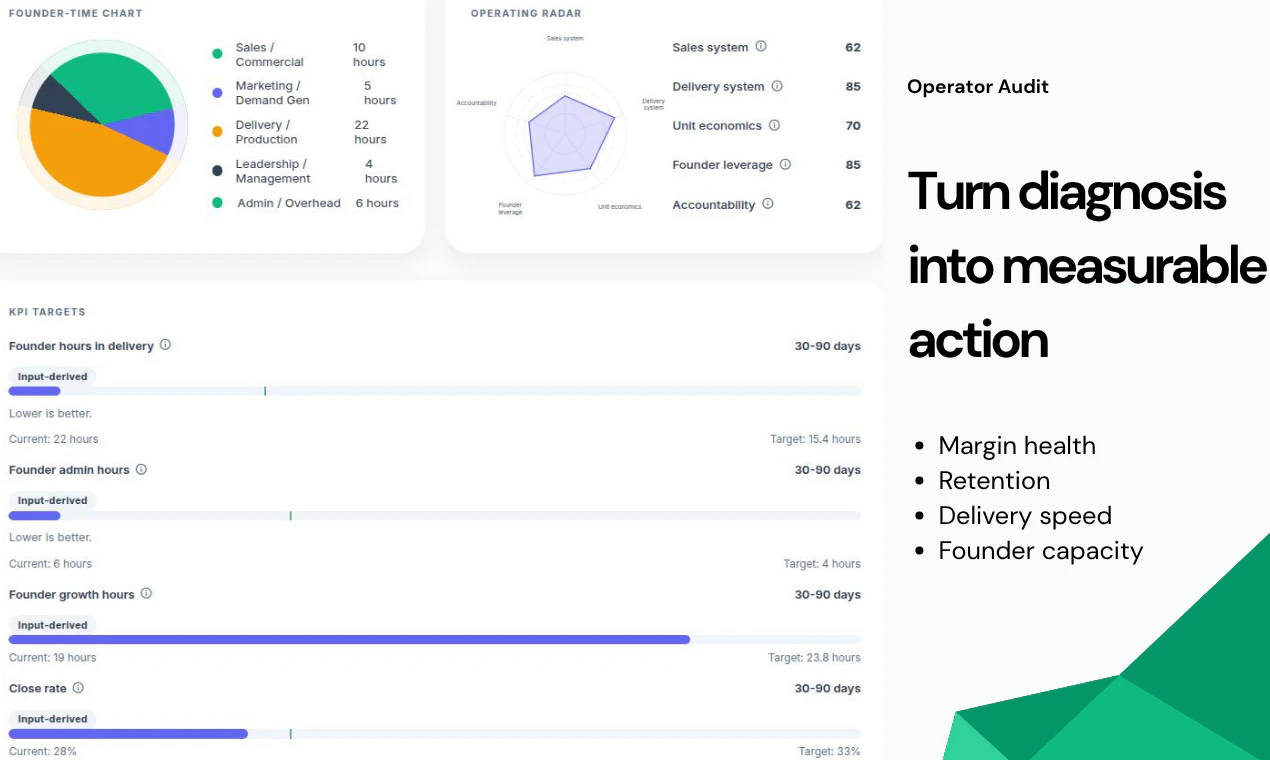 Operator Audit helps founders find the real bottleneck slowing their business and turn it into a ...