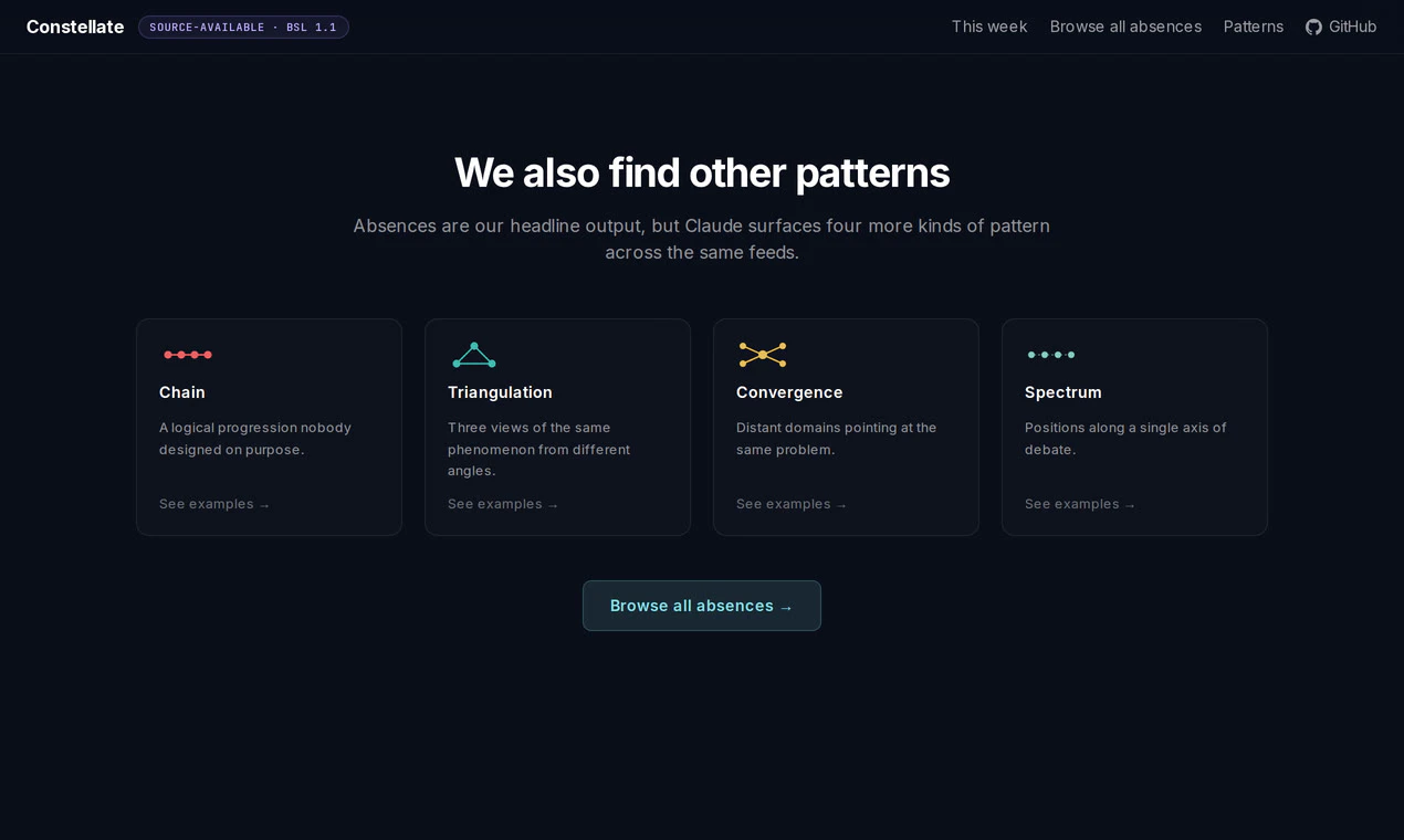 Every week, Claude reads 9 tech feeds (HN, arXiv, PH, YC...) and finds the gaps: things everyone ...