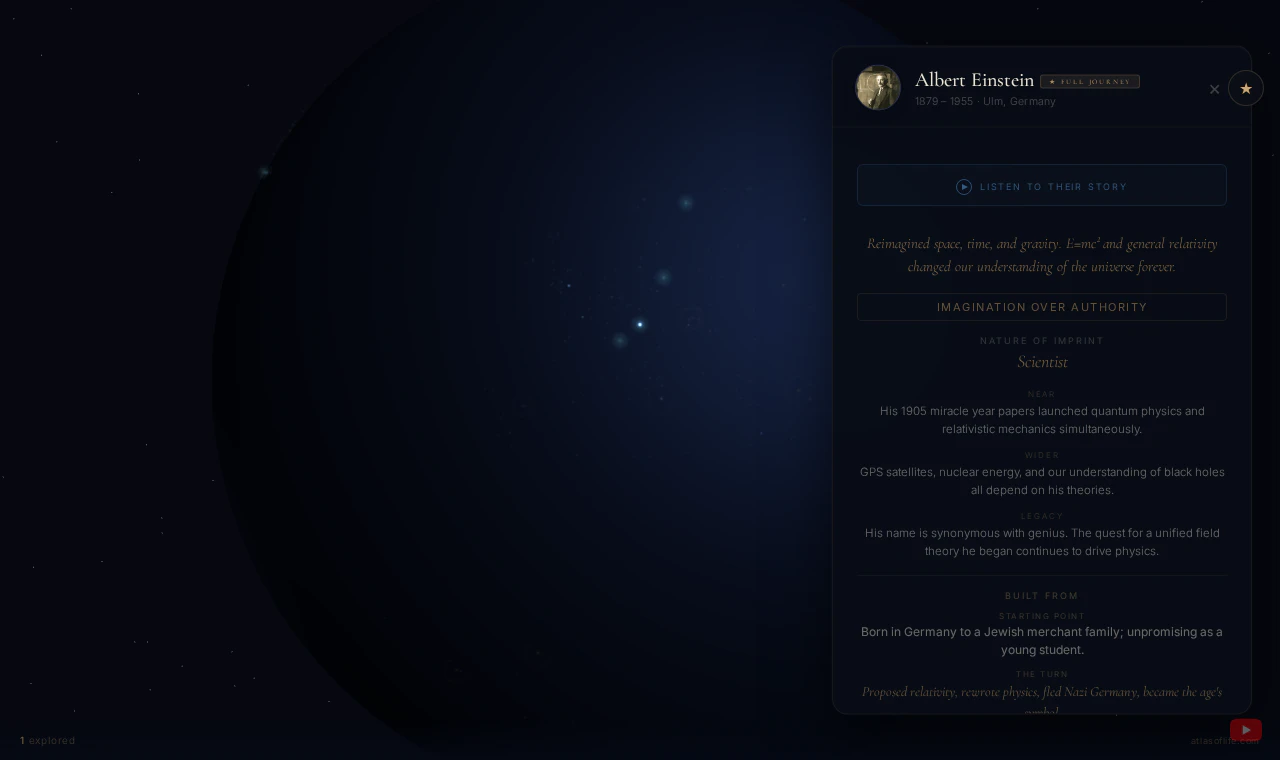An interactive 3D globe with 690 historical personalities — from Aristotle to Tesla, Cleopatra to...
