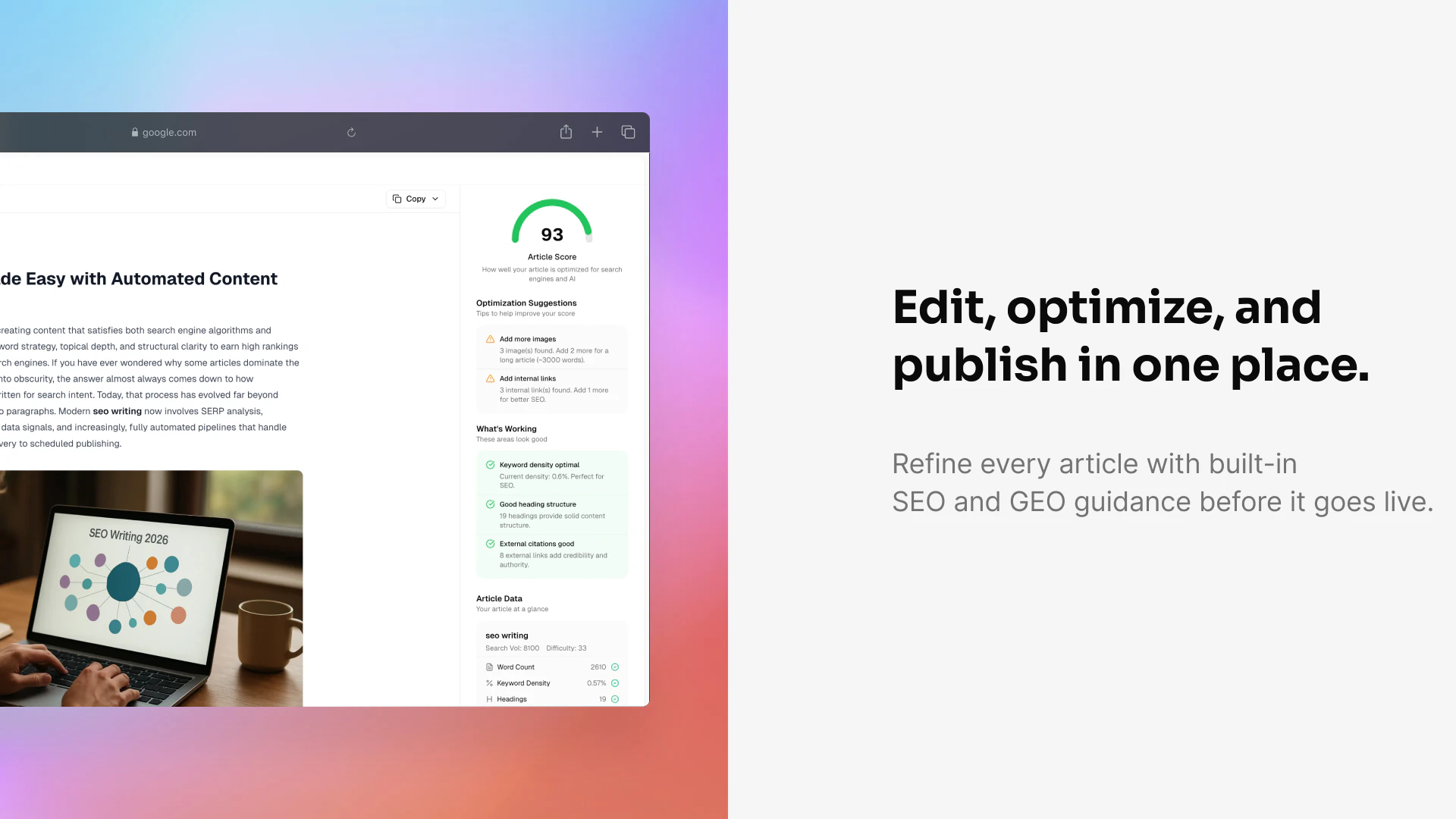 Generate and publish articles for Google and AI search