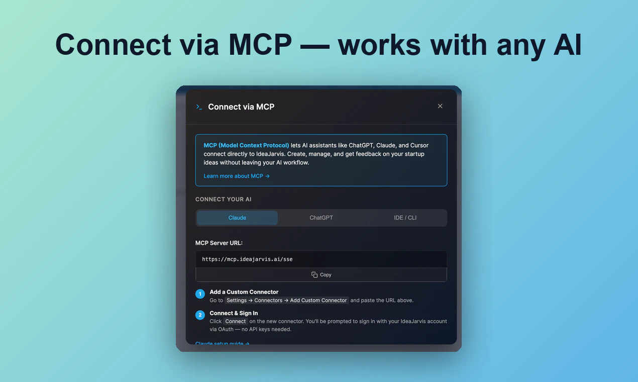 IdeaJarvis is a free AI idea workspace that turns ChatGPT, Claude, Cursor, or any MCP-enabled AI ...