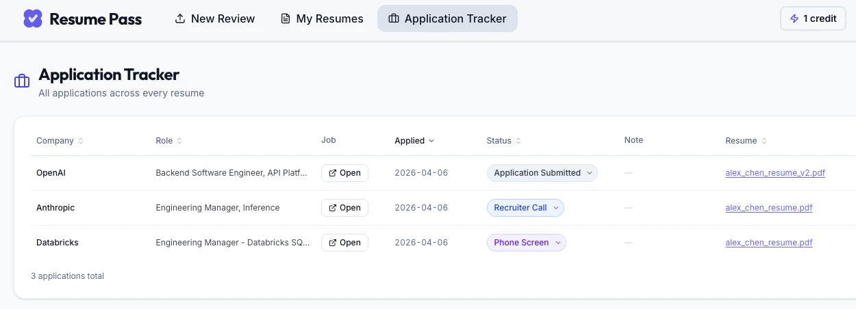 Resume Pass reviews your tech resume the way a hiring manager at a top tech company actually woul...