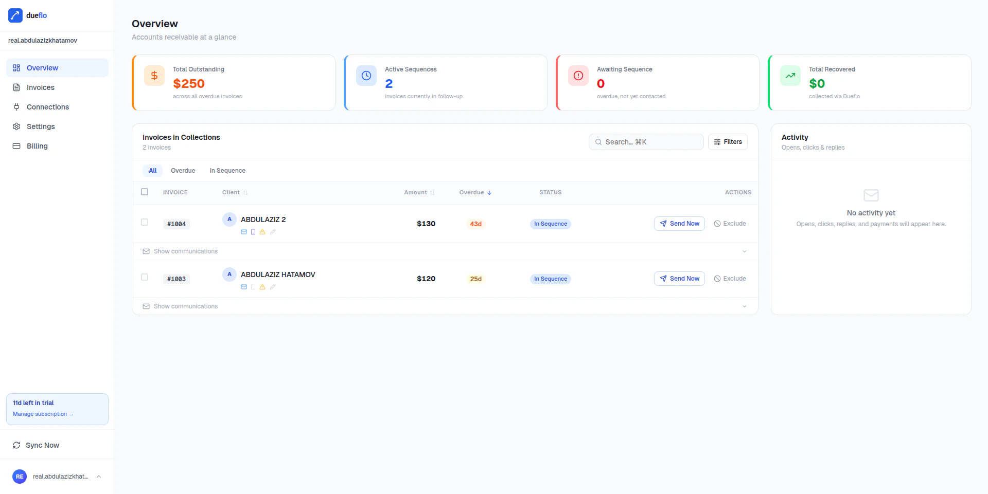 Dueflo connects to QuickBooks and automatically collects overdue invoices through AI-written emai...