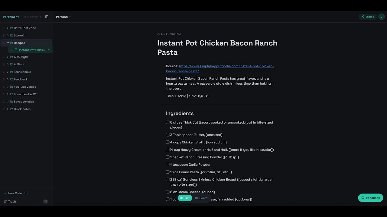 Parchment is a fast, minimal notebook with a full REST API. One POST endpoint — no OAuth, no pagi...