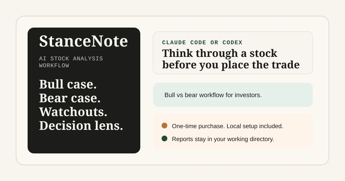StanceNote is a stock analysis workflow for self-directed investors using Claude Code or Codex, w...