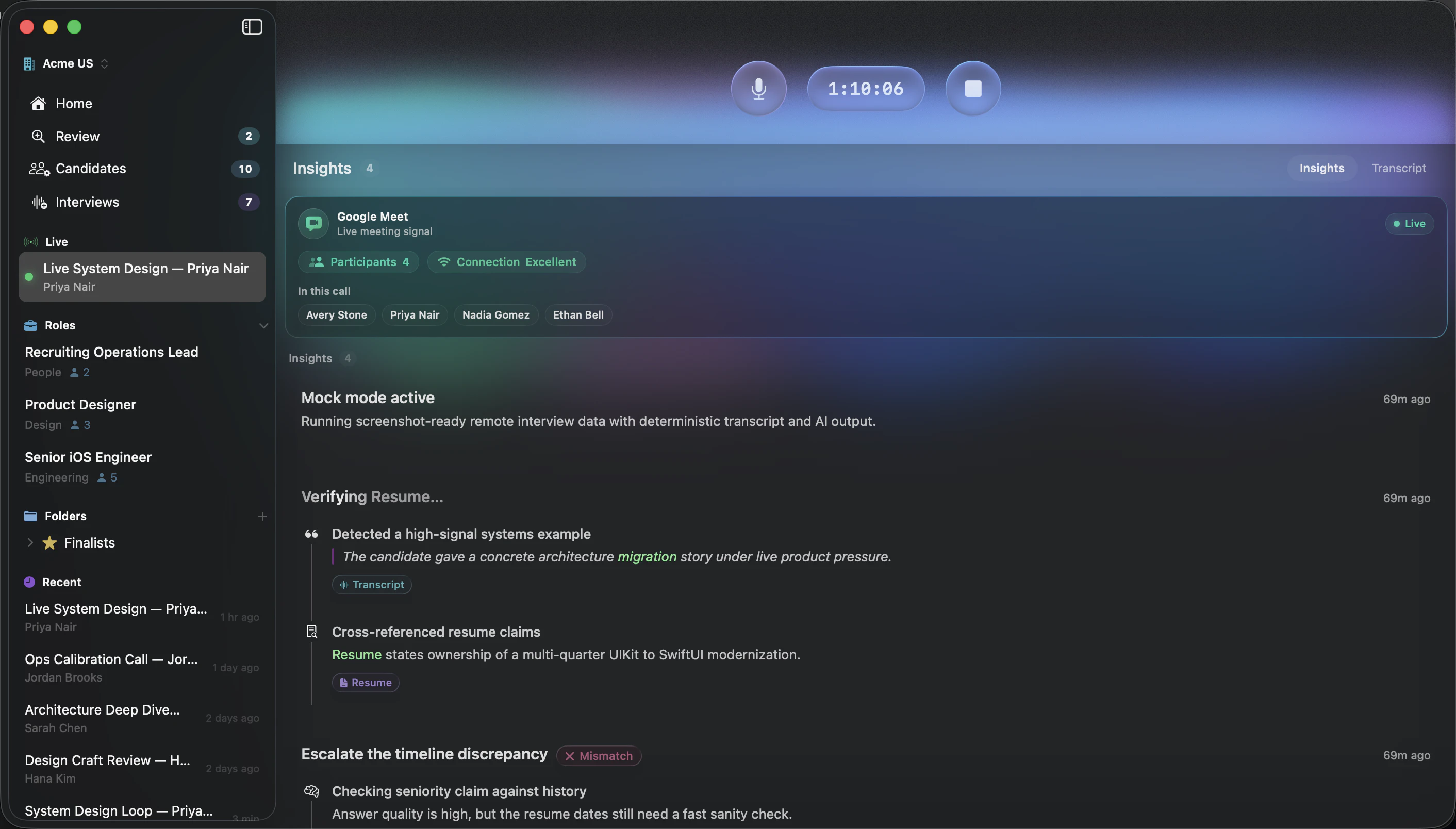 RFLX AI is a native macOS interview copilot for recruiters and founders. It captures interviews f...