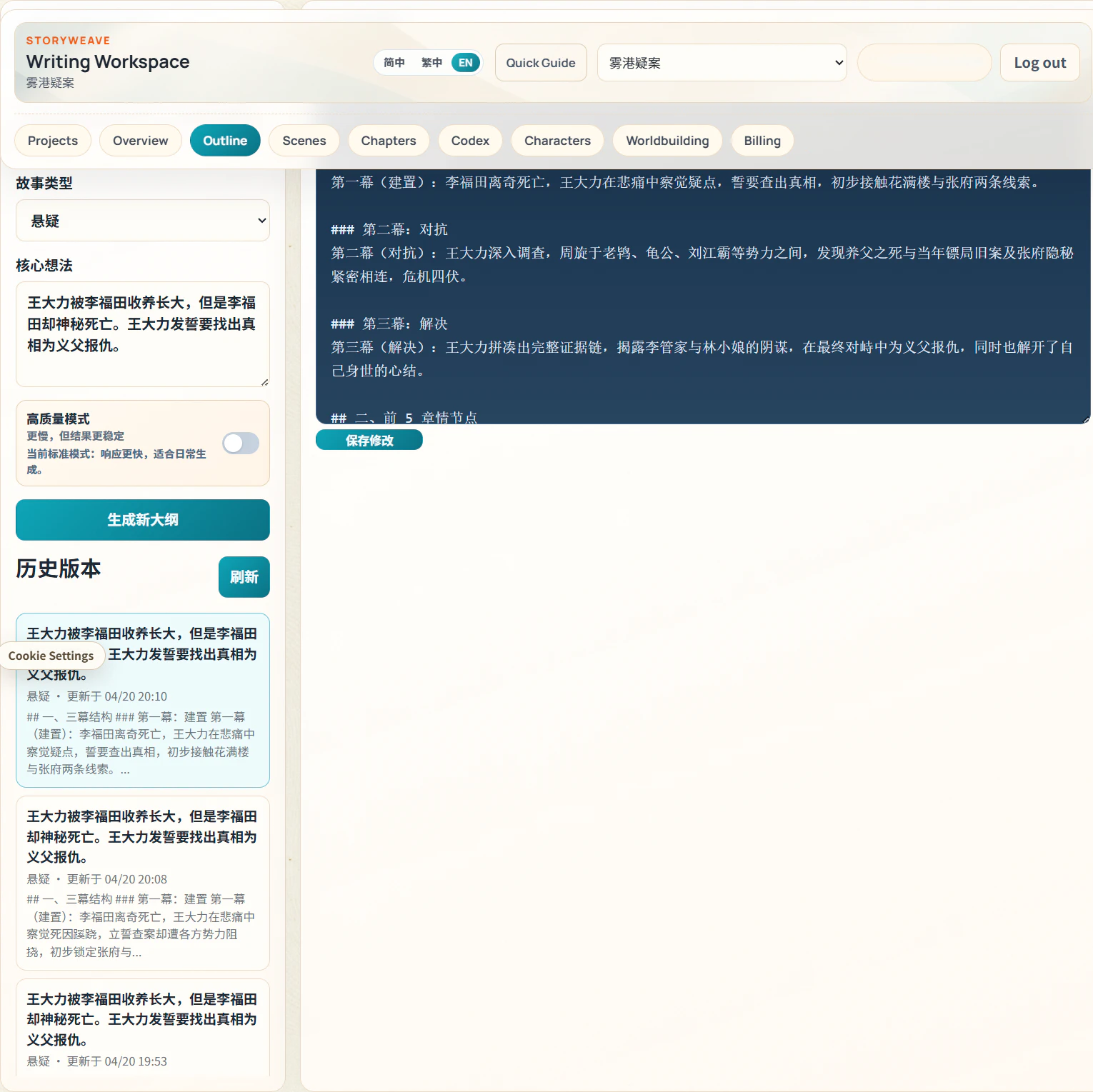 StoryWeave is an AI writing workspace for long-form fiction. Plan your story in one place with ov...