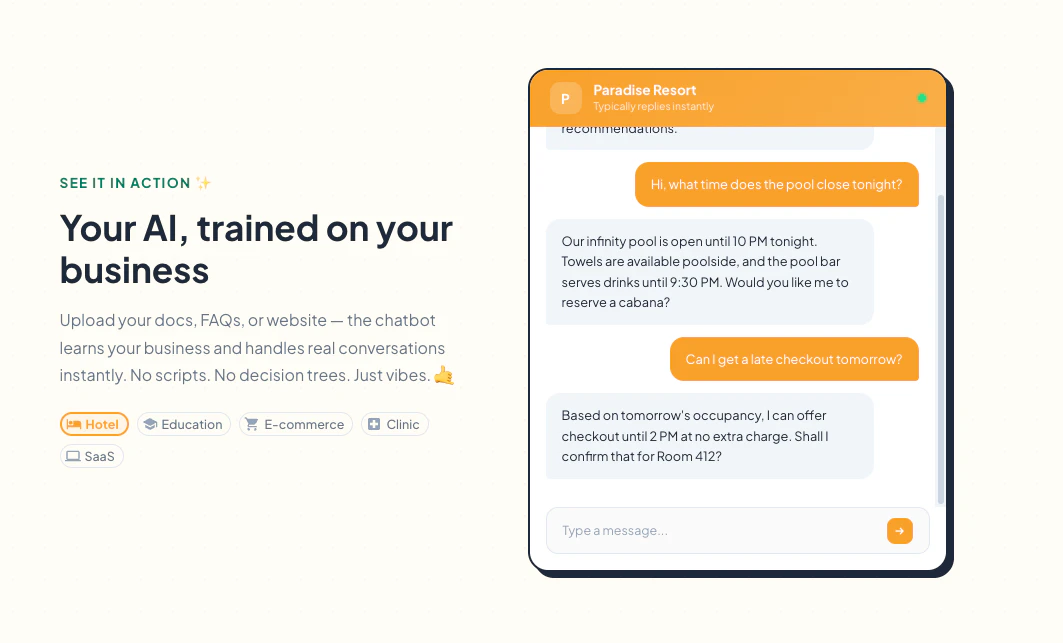 Get a custom AI chatbot tailored to your business needs. Improve customer service, automate suppo...