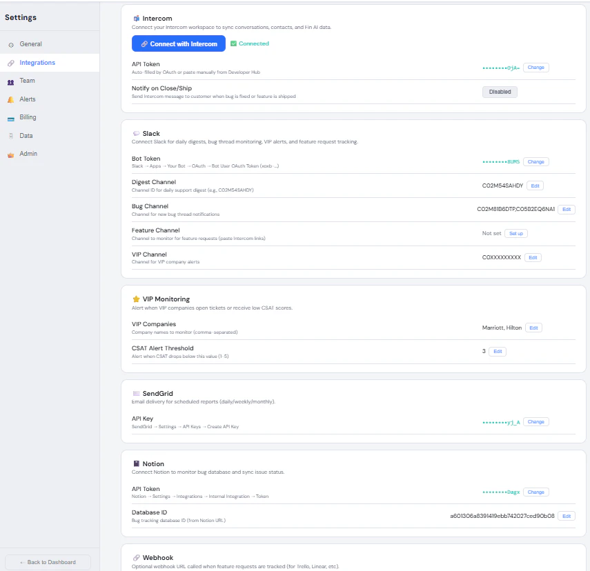 Velax.ai connects to your Intercom workspace in 2 minutes and shows you everything native reporti...