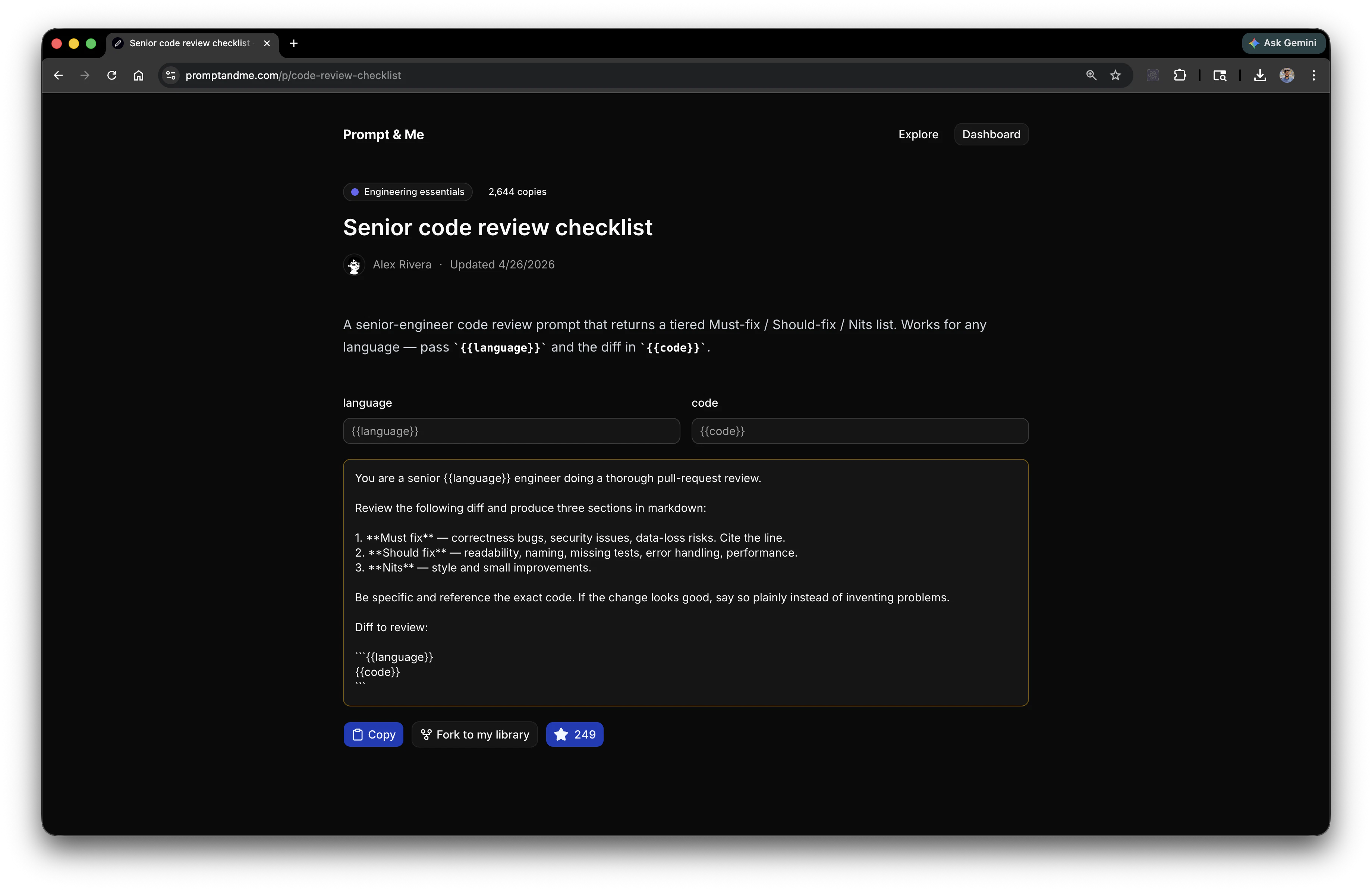 Type {{like_this}} and we'll turn it into a fillable field. Save, version, search, and share prom...