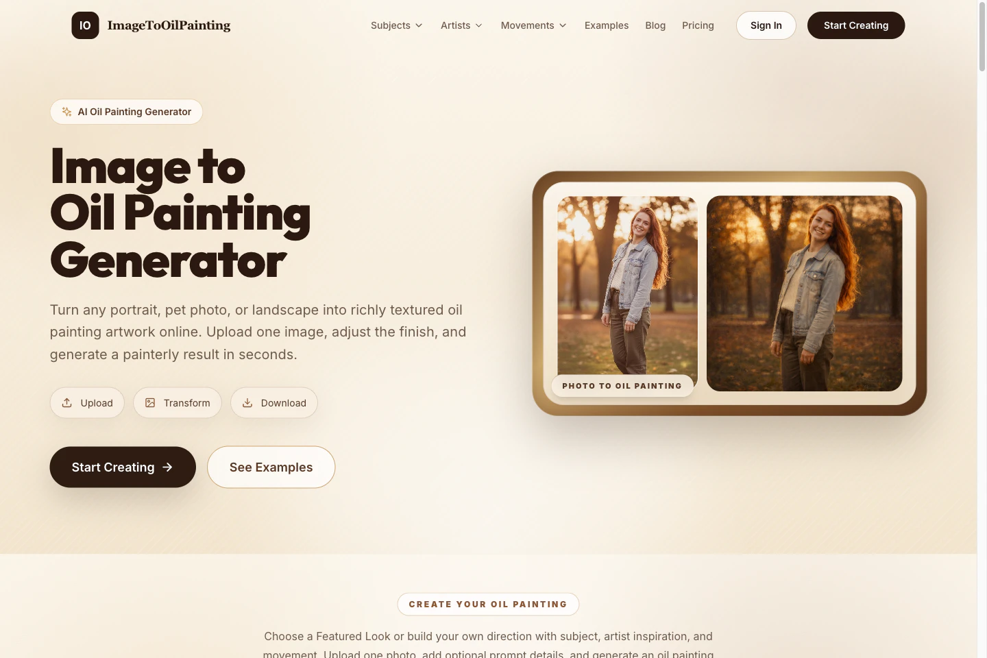 Turn portraits, pets, and landscapes into original oil paintings in seconds. Upload one image, pi...