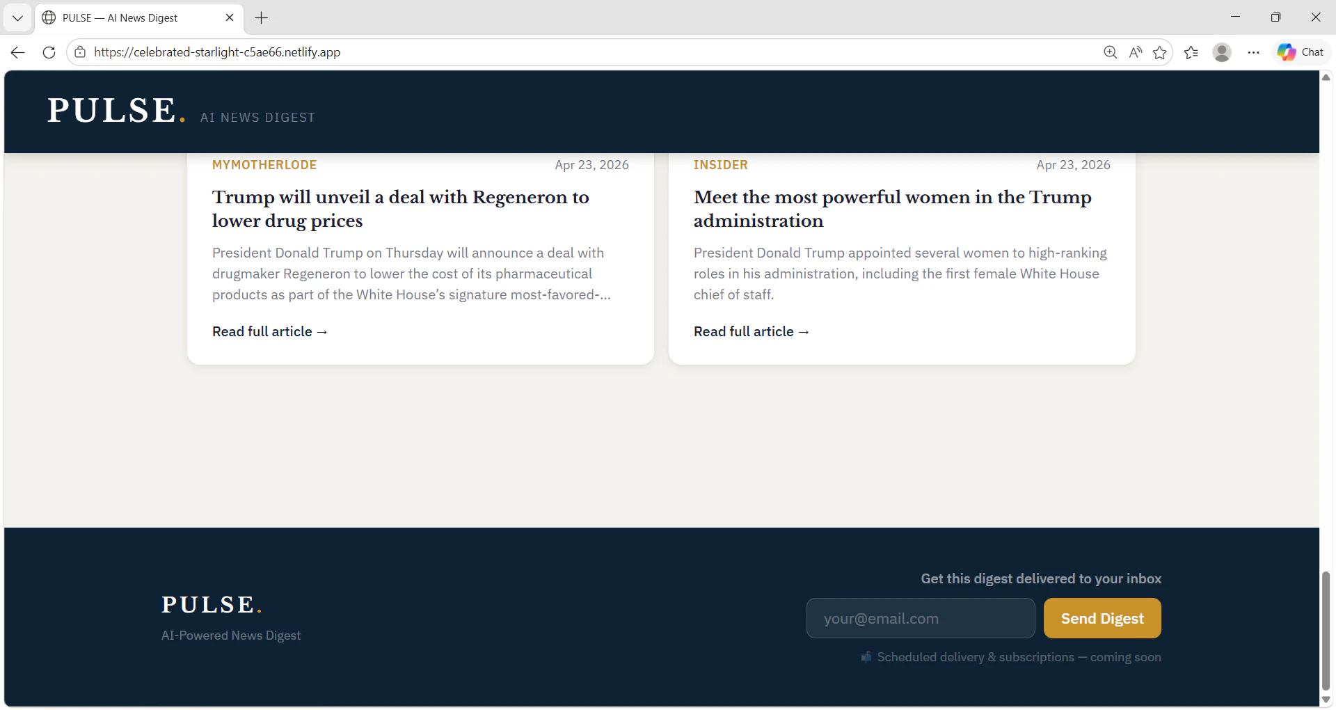 Most news tools show you what happened. PULSE shows you how the media is covering it — sentiment,...
