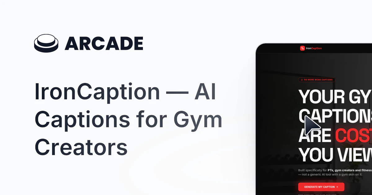 Iron Caption generates scroll-stopping captions for fitness content in seconds. Built specificall...