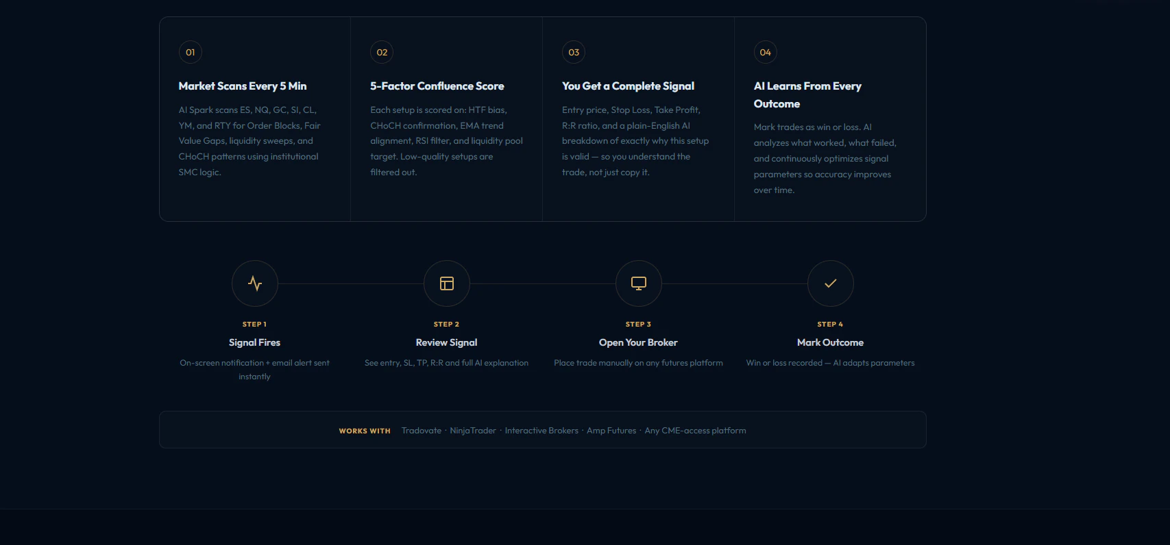 AI Spark gives futures traders AI-powered signals for ES, NQ, GC, CL, SI and more. See exactly wh...