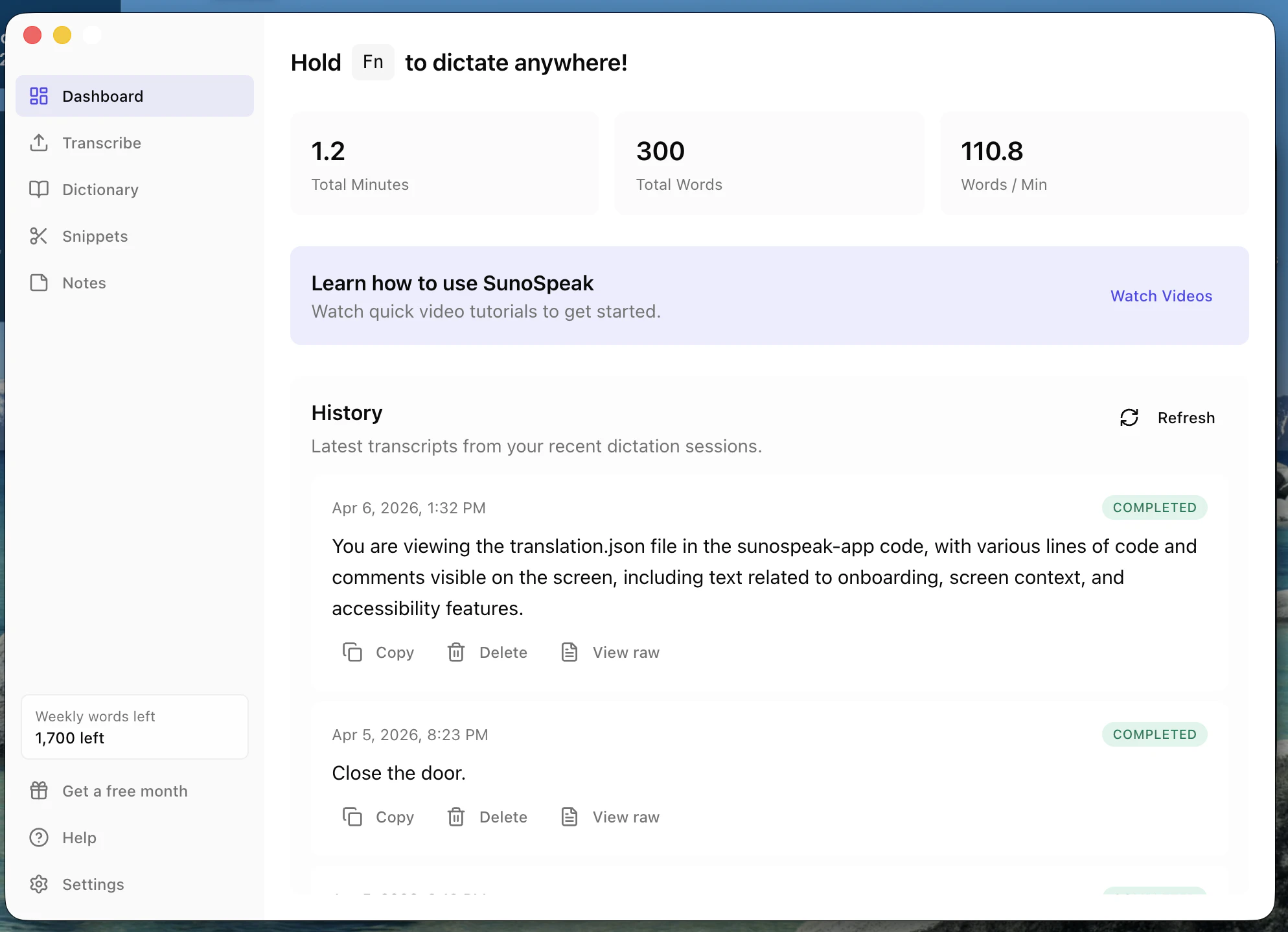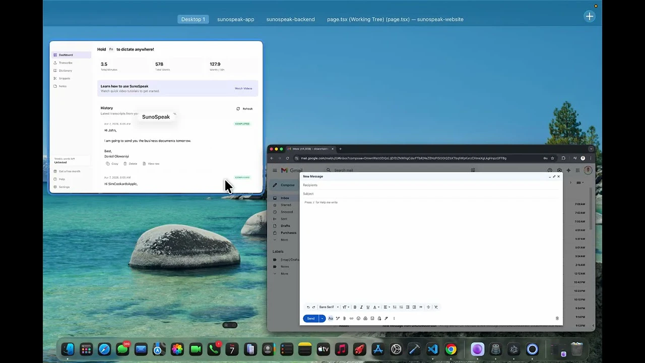 Write faster with SunoSpeak using your voice. Trigger dictation instantly with a hotkey and have ...