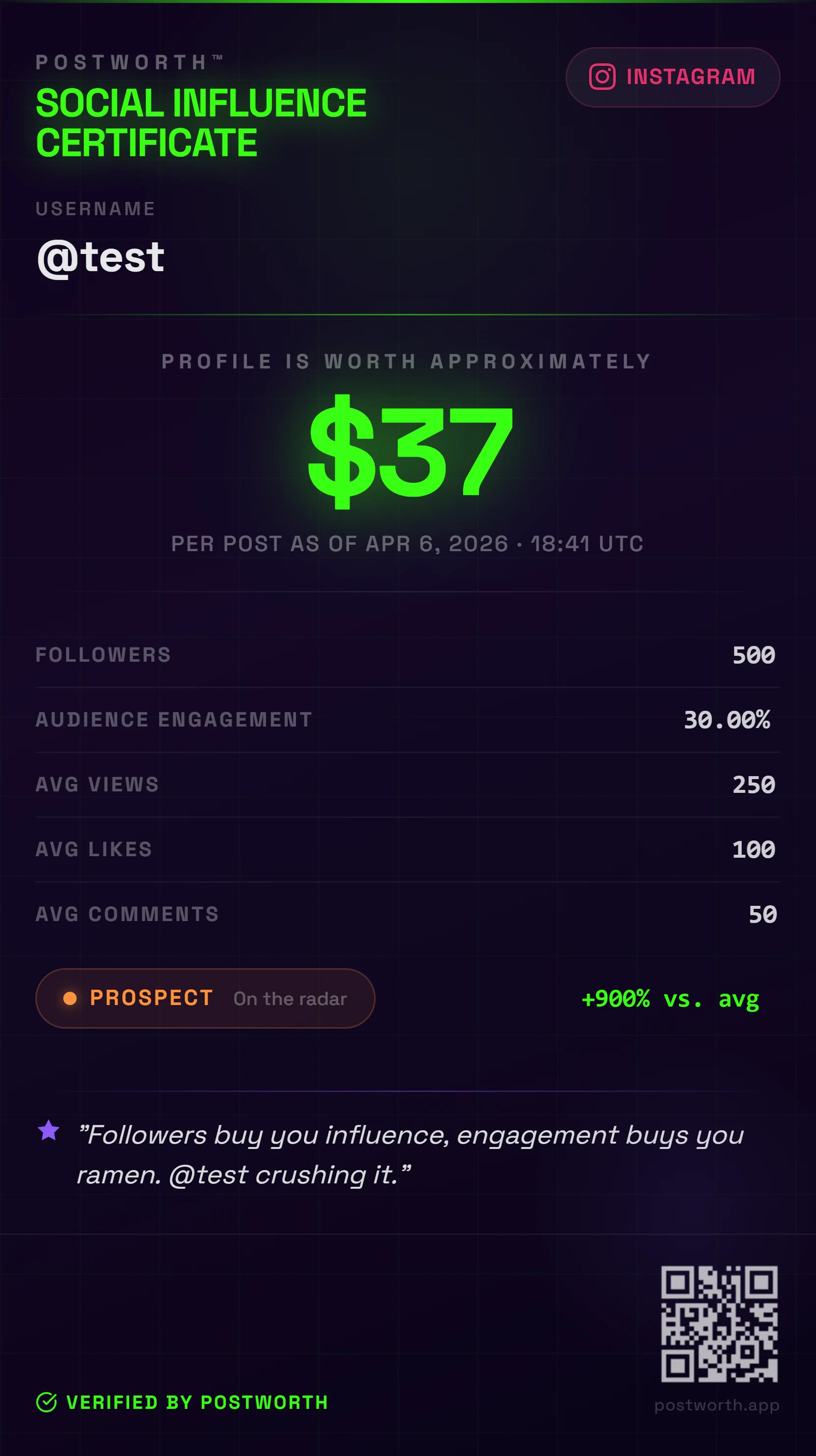 Data-backed influencer rates & shareable price certificates