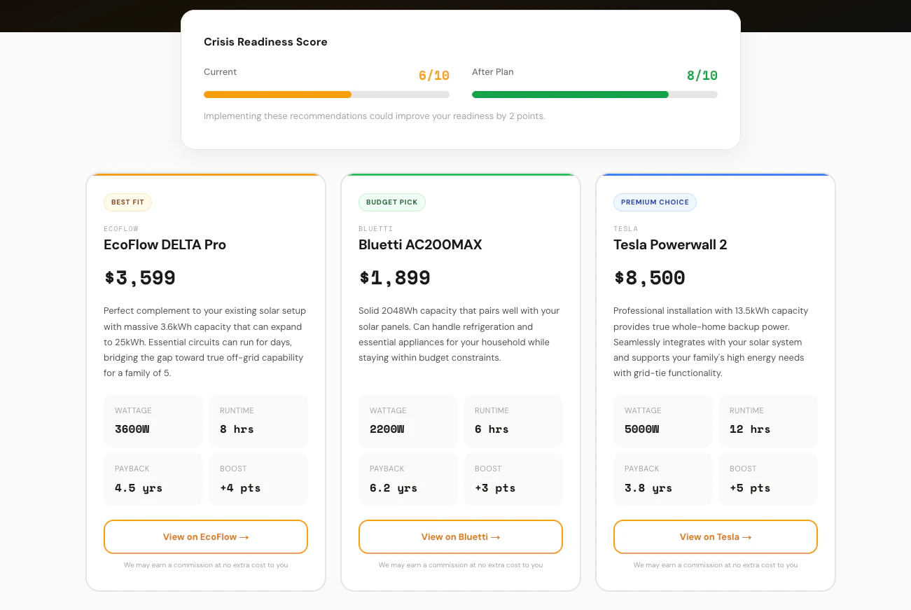 Answer 8 questions. Get your AI energy backup plan in 5 min.