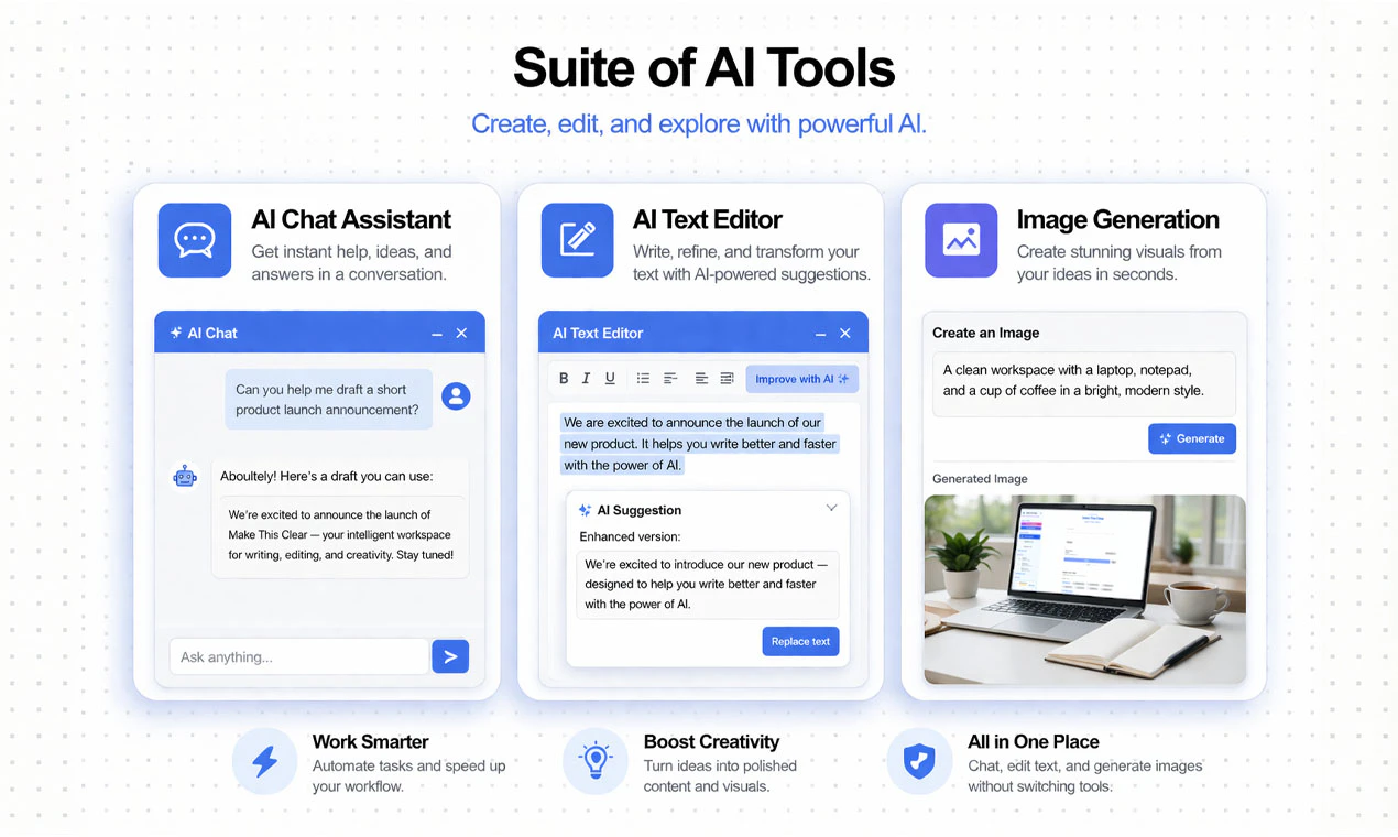 Make This Clear brings your writing workflow into one place. Use it to rewrite unclear text, impr...