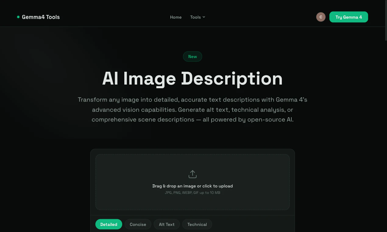 Free multimodal AI tools powered by Google's Gemma 4 models