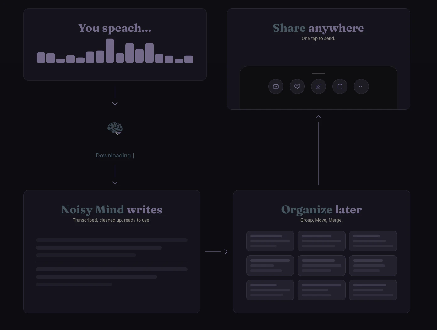 Voice notes → clear text. For brains that never slow down