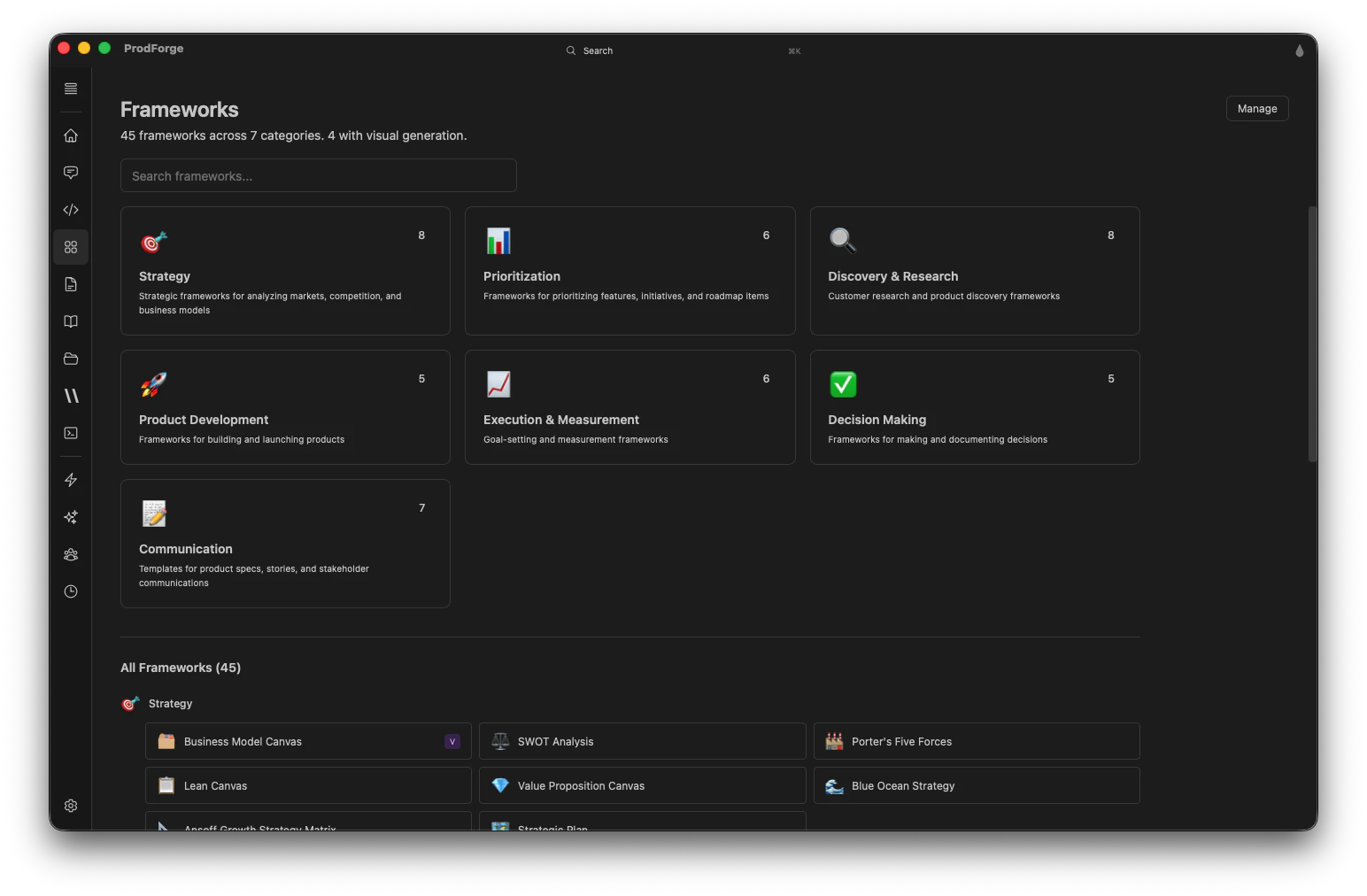ProdForge is a desktop app that gives Product Managers superpowers. AI-powered frameworks, agents...