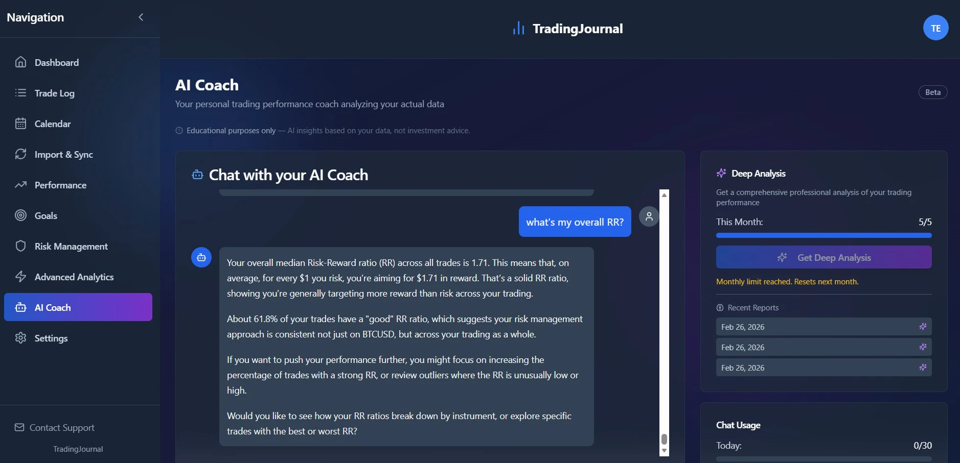 TradingJournal is built for MT4/MT5 traders who want more than raw stats. Import trades automatic...