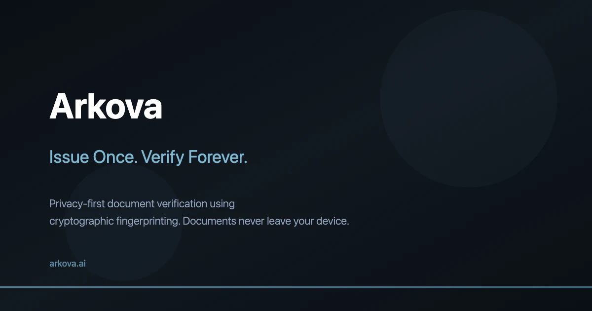 Arkova fingerprints documents in your browser — they never leave your device — then anchors each ...