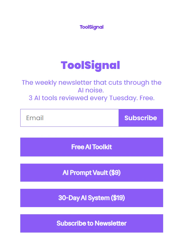 Every week, I test AI tools so you don't have to. ToolSignal is a free weekly newsletter that cut...