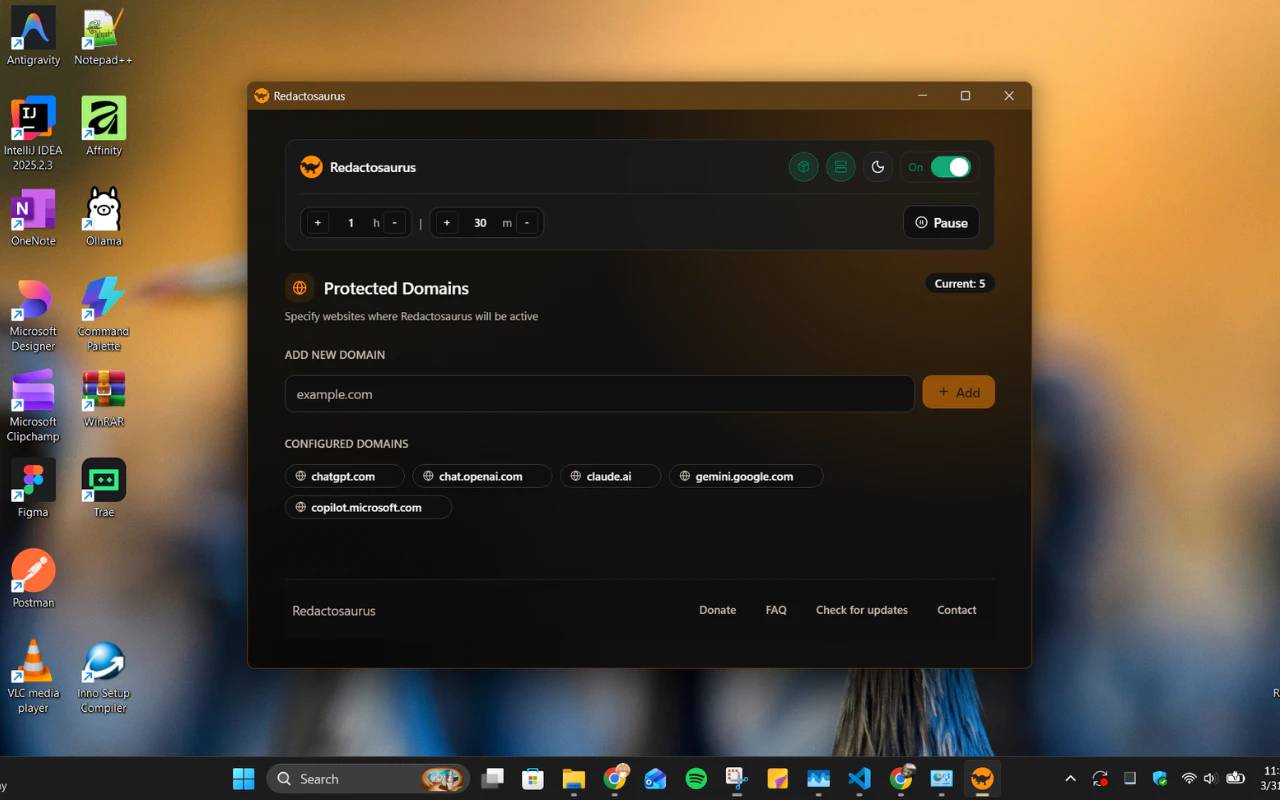 Redactosaurus helps you avoid accidentally sharing sensitive information when using AI chatbots. ...