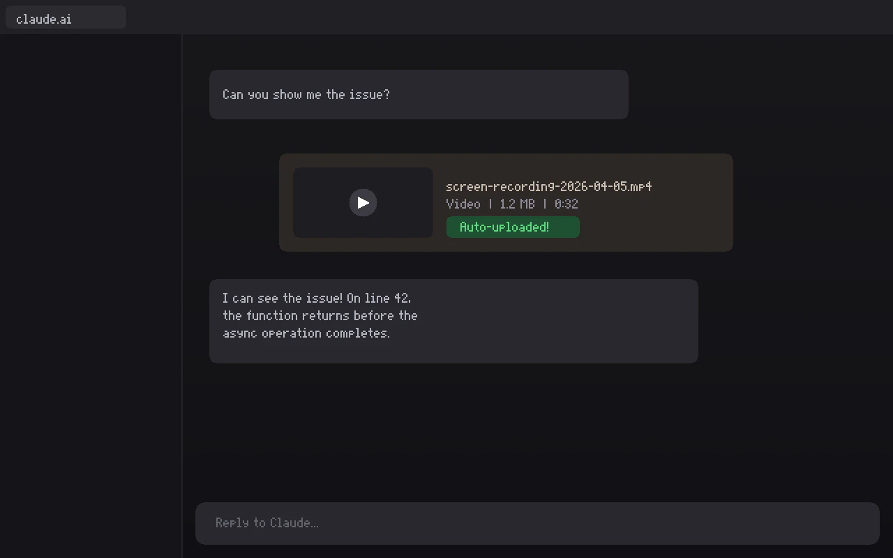 Record Screen & Drop Into Claude, ChatGPT, Grok, Gemini