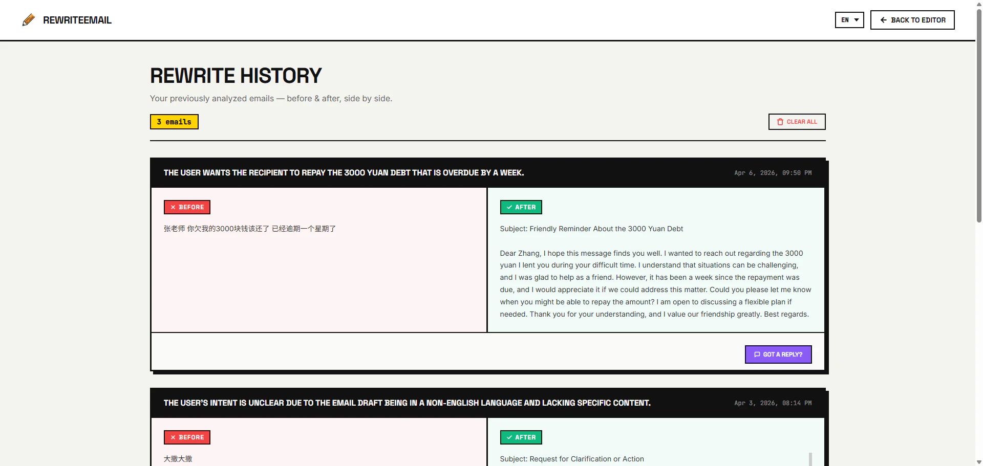 RewriteEmail is a free AI email rewriting tool for professionals. Paste your rough draft → get a ...