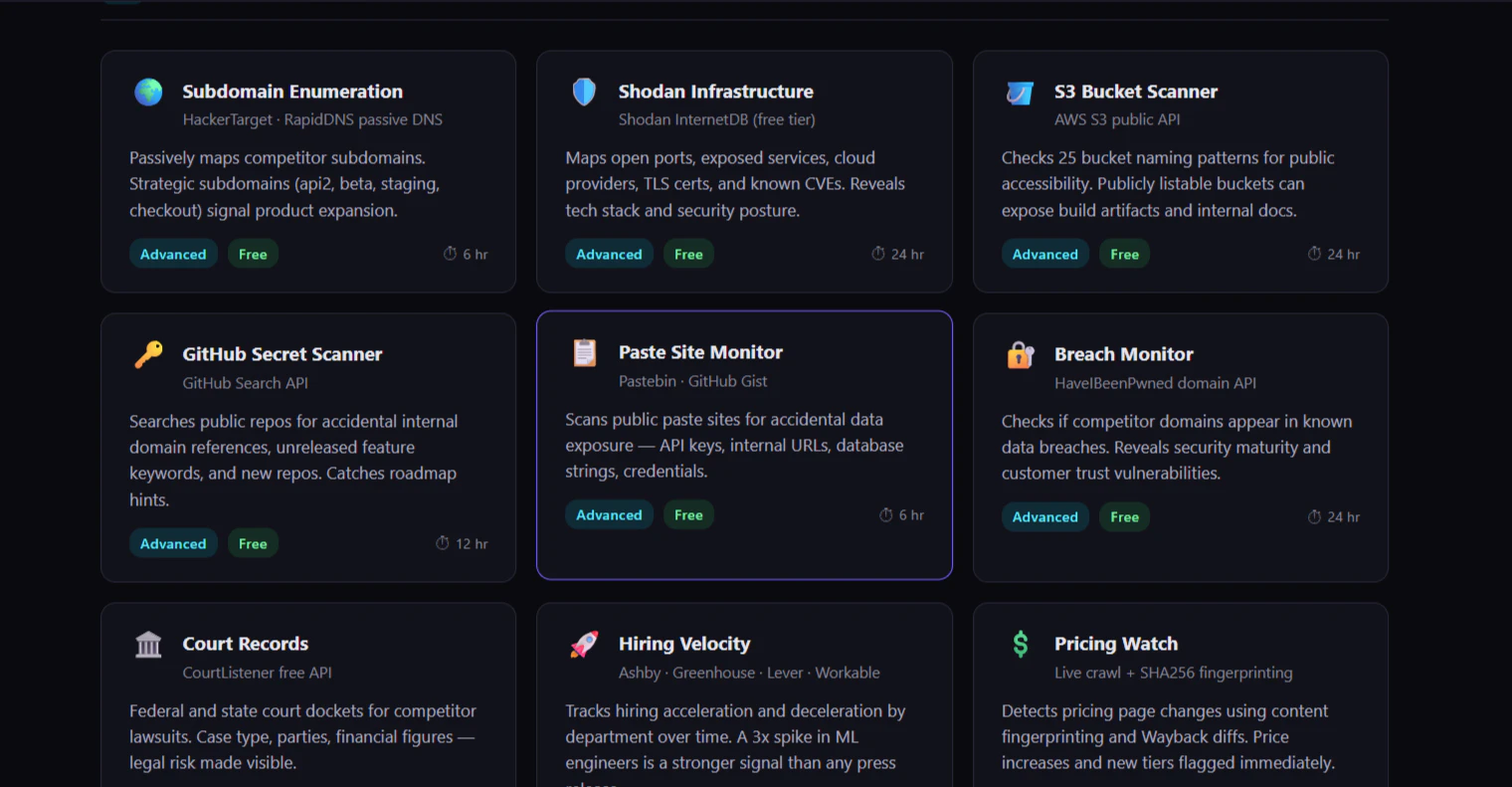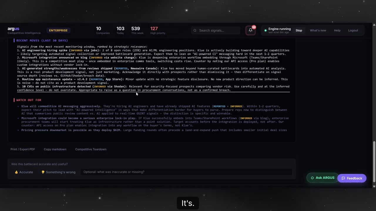 Argus monitors 30+ intelligence sources GitHub commits, job postings, patents, SEC filings, prici...