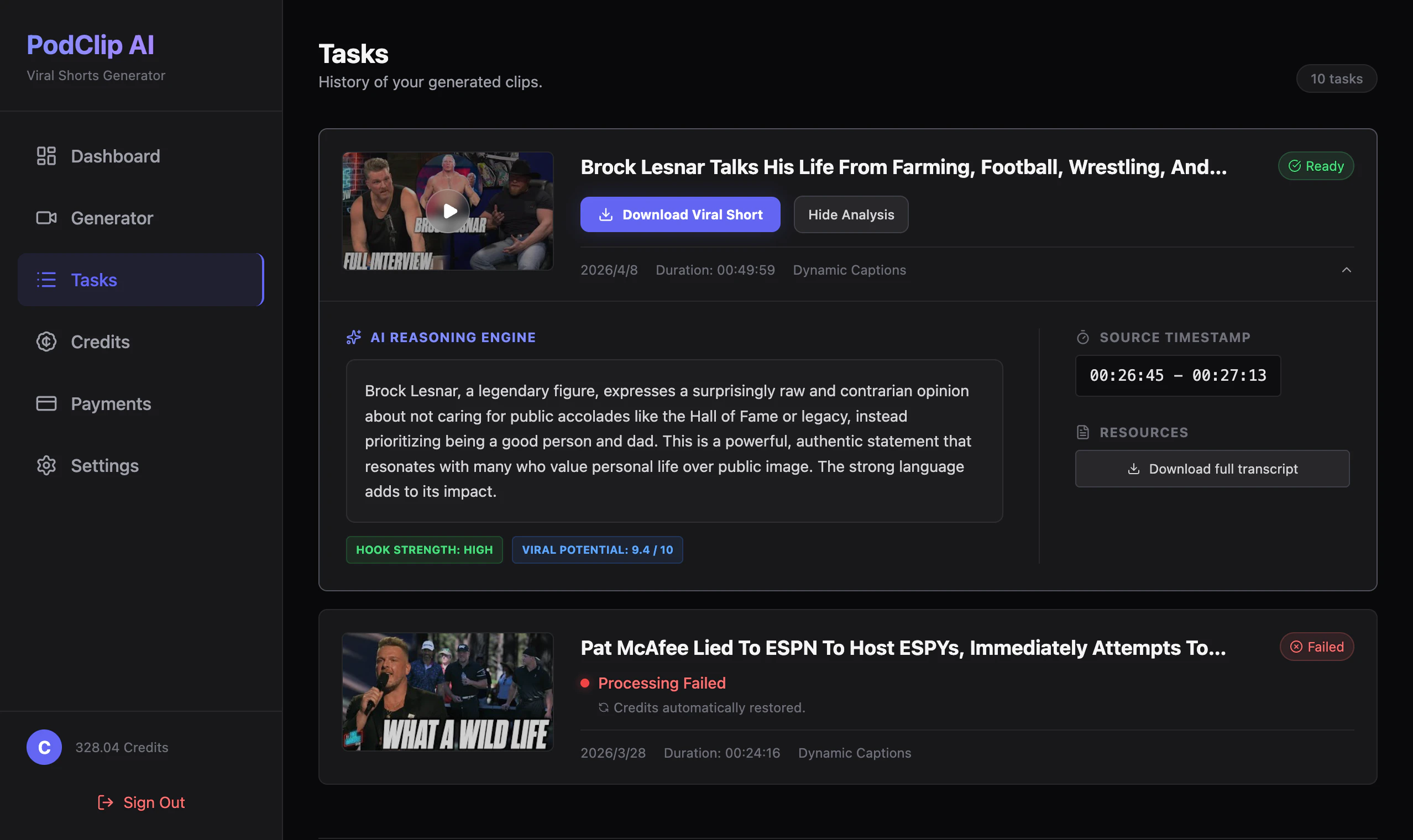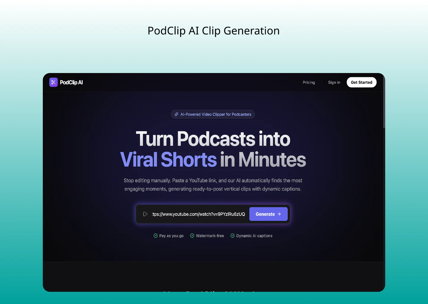 Turn YouTube podcasts into viral shorts in minutes.