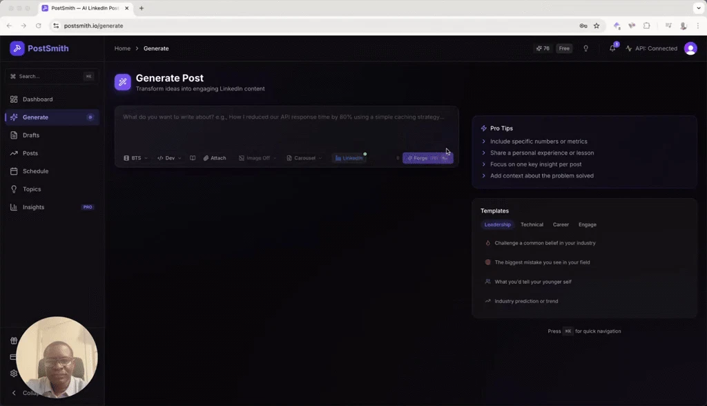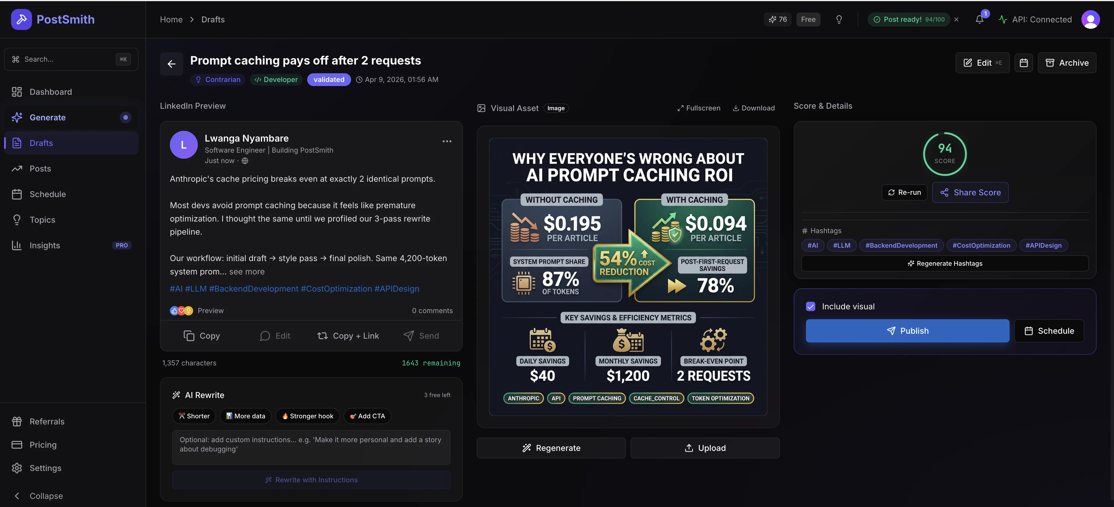 From idea to scored LinkedIn post in 90 seconds