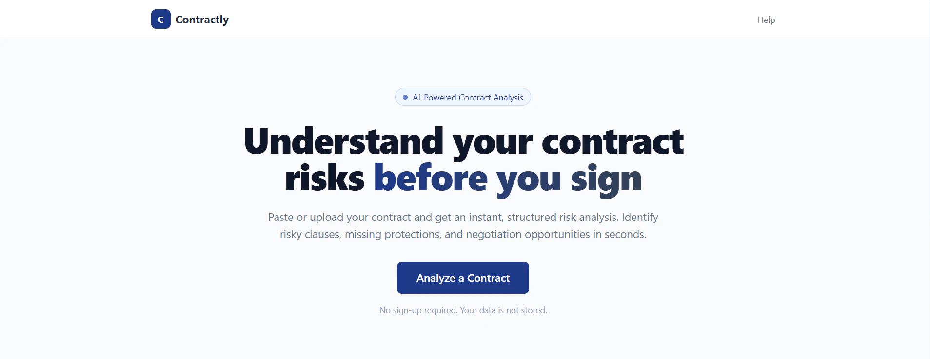 Contractly is an AI-powered contract risk analysis tool for startups and SMBs. Most people sign c...