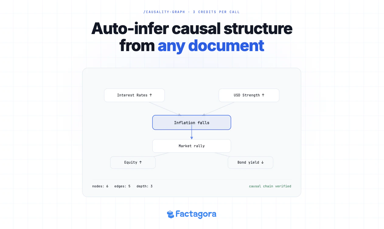 Factagora API lets you ground your AI in verified facts, evidence, and causal reasoning using jus...