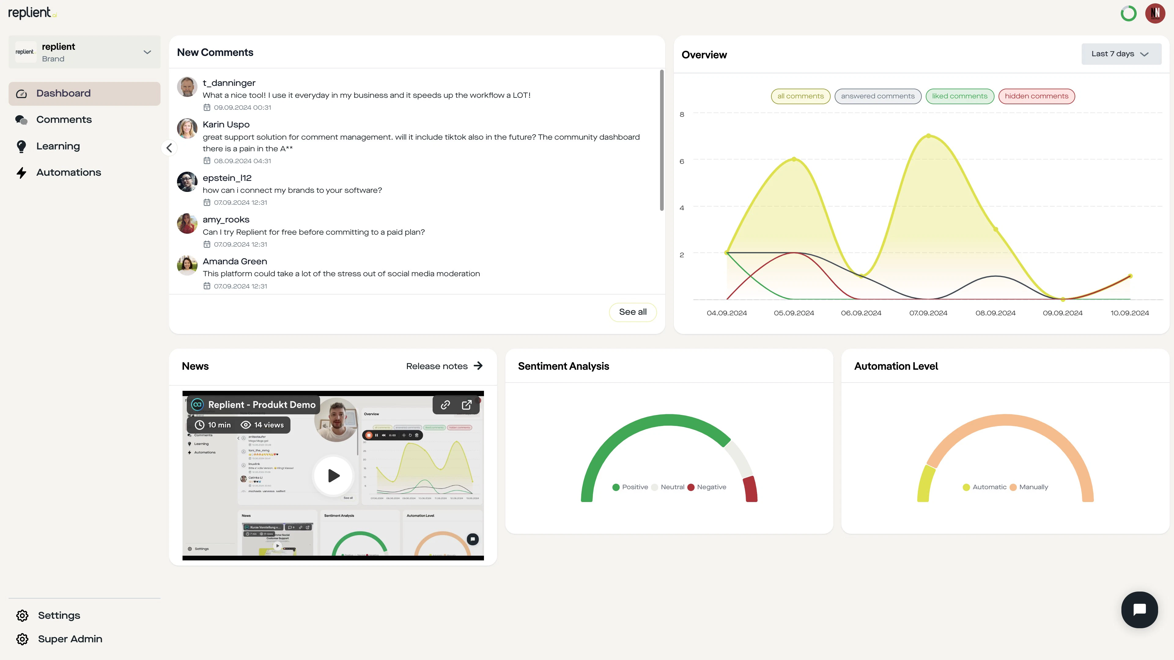Replient is an AI-powered social media comment manager for brands, creators, and agencies. Connec...