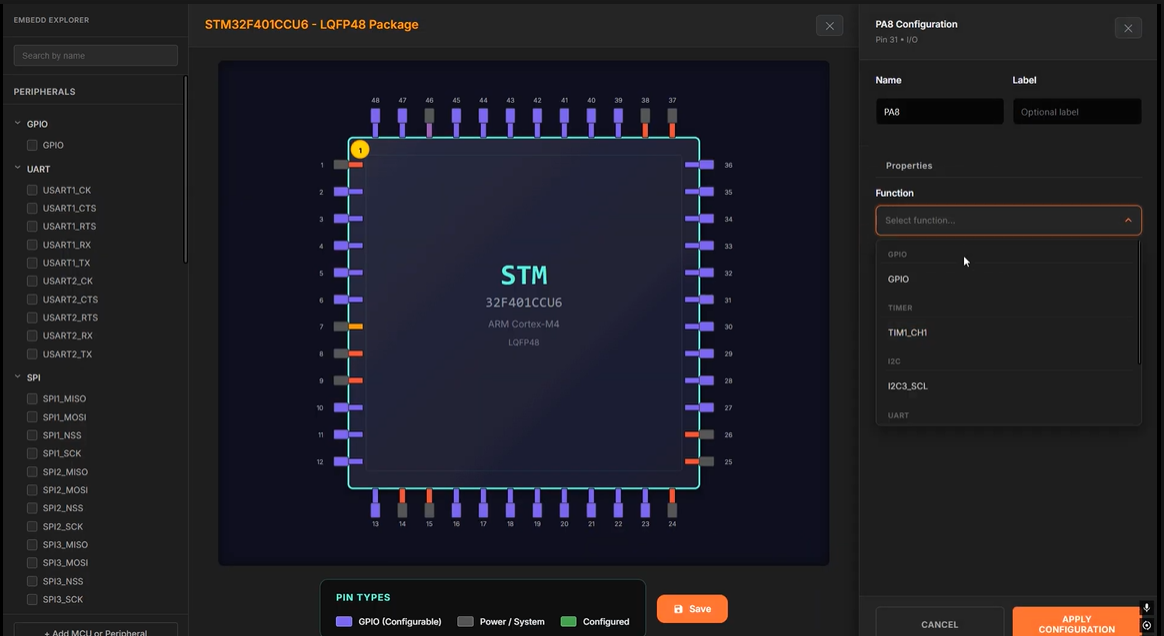 ボード用STM32ファームウェアを自動で作成し、フラッシュするAI IDE