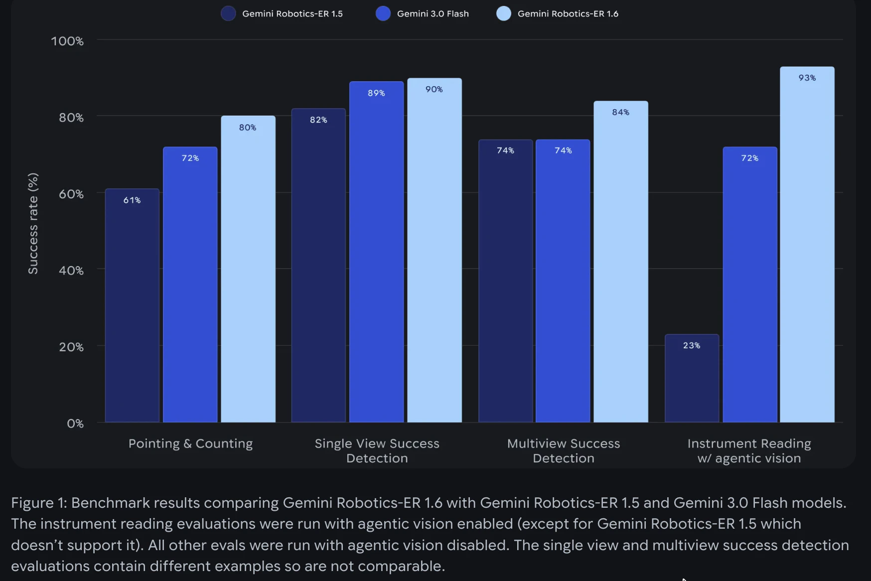 Gemini Robotics-ER 1.6 is a vision-language model for robot reasoning. It handles spatial pointin...