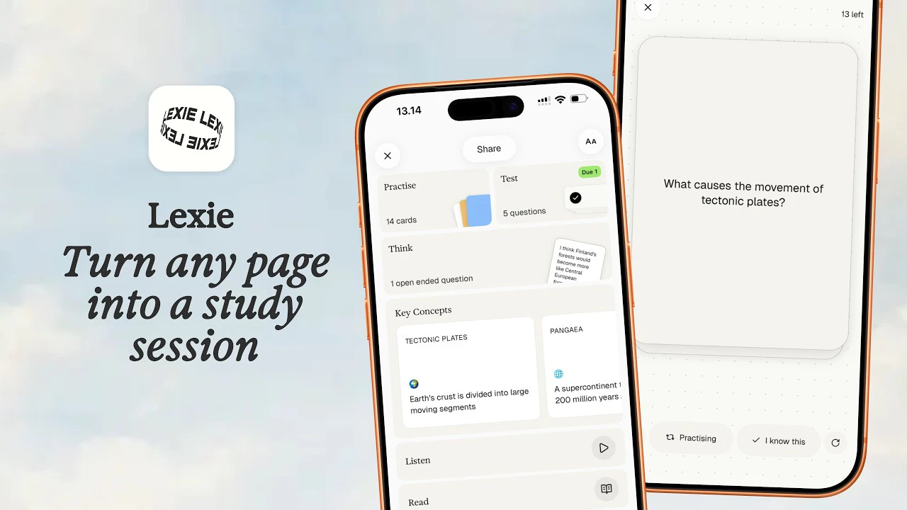 Snap a photo of your notes. Lexie reads them and builds a practice set from them. Not just flashc...