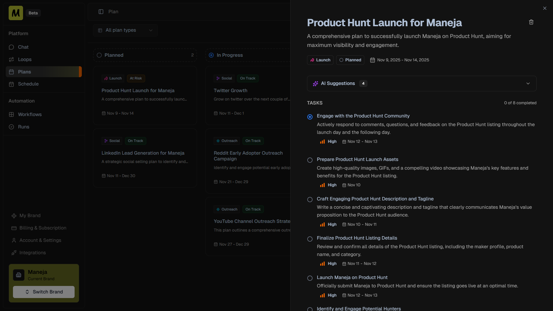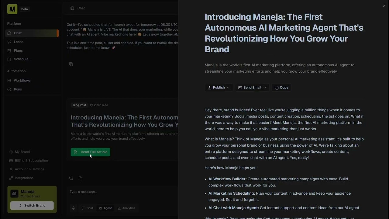Manejaは、マーケティングを自動で実行する自律AIエージェントを提供します。ワークフロー自動化、アクションのスケジューリング、成長追跡、多くの統合を通じ、個人事業主や小規模ビジネスに対して効...