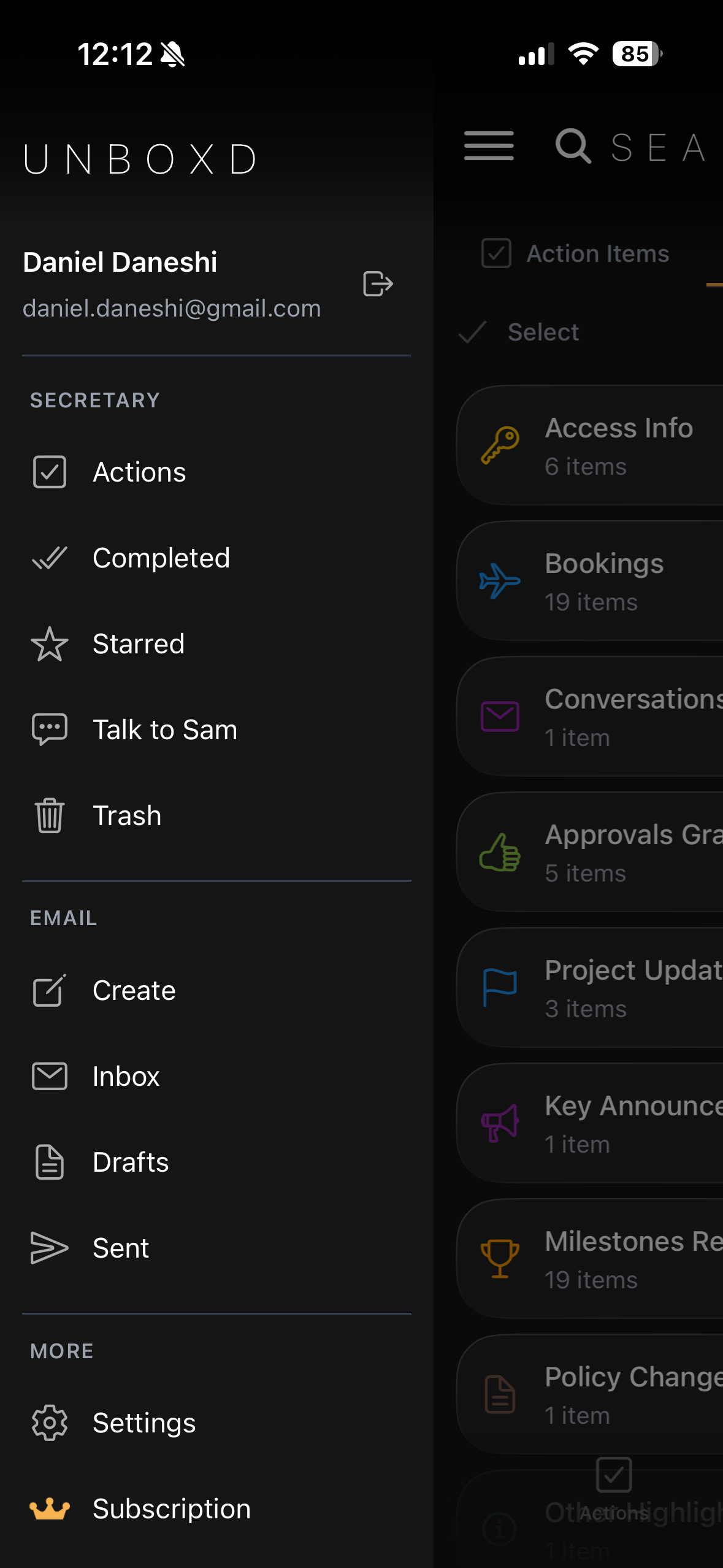unboxdは受信箱をAI秘書に置き換えるスマートTODOリスト型のメール管理ツール。メールを全て読むのではなく、AI秘書が読み込み、アクションアイテムと重要情報(ハイライト)を抽出。その他はF...