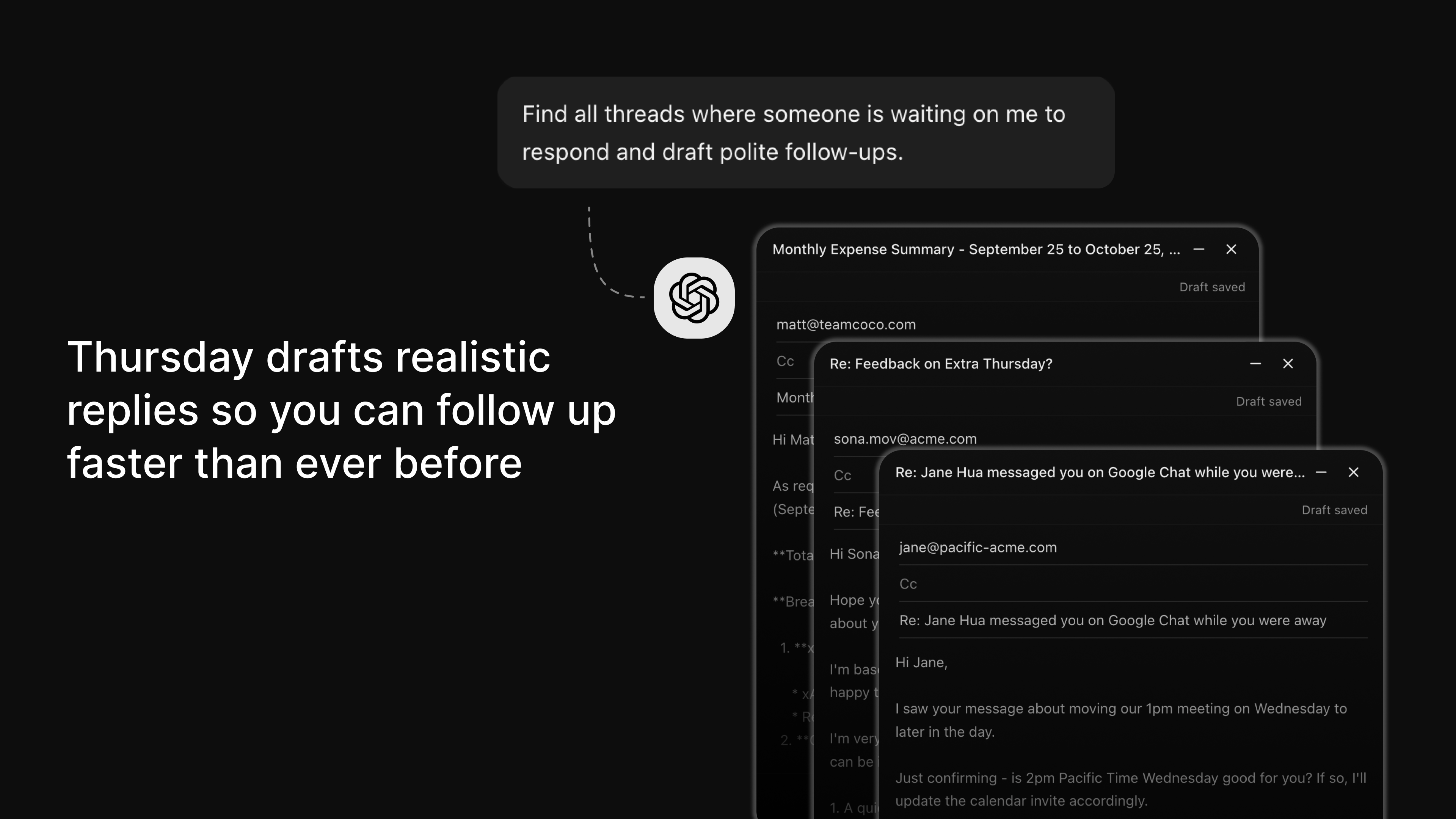 受信トレイとチャット。質問、下書き、要約を – 迅速に
