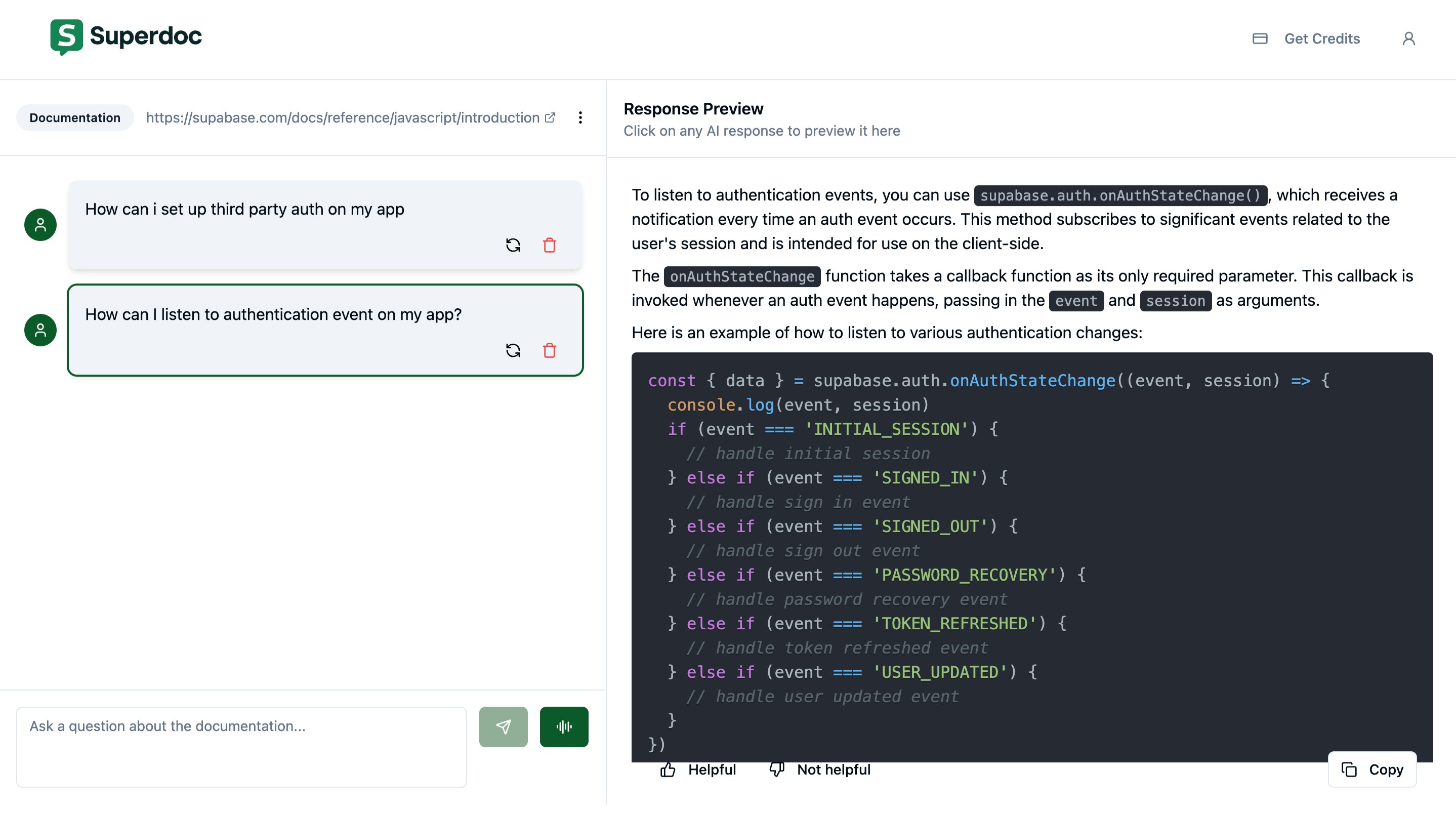 ## 概要 Superdocは、開発者向けのAI駆動型ドキュメンテーションツールです。クイックな質問応答を通じて、ドキュメントを簡単に参照できます。 ## 特徴 - ドキュメントリンクを提供す...