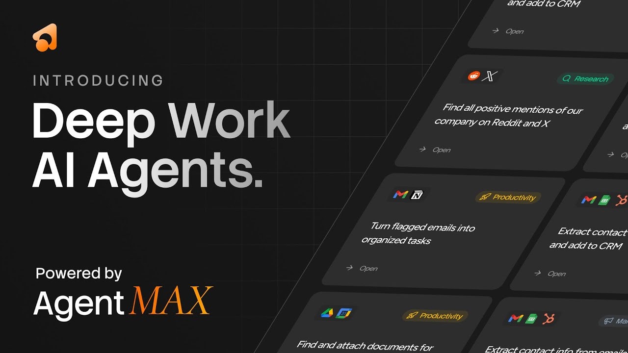 ## 概要 - Agent MAX が駆動する Deep Work AI エージェント。24/7 自動運用を実現し、幻覚を抑えつつコストを大幅削減。 - 主な強み: ほぼゼロの幻覚、100倍の...