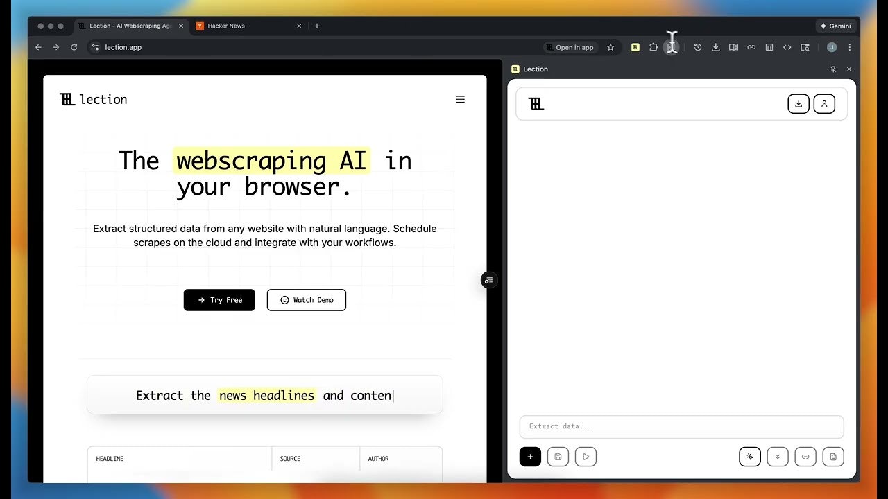 ## 概要 Lectionはブラウザ内で動くAIウェブスクレイピングツール。コード不要で自然言語指示からスクレーパーを自動生成。JSが重いサイトやページネーションにも対応。クラウド上で24/7実...