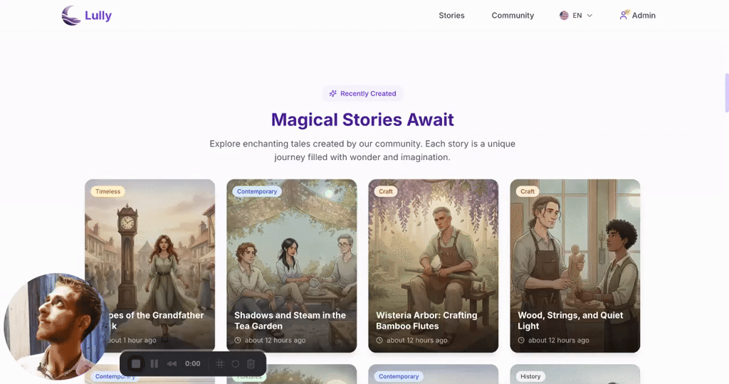 大人向けの睡眠サポートを目的としたパーソナライズ型の就寝前ストーリー。穏やかなナレーションとリラックスできるテーマで眠りにつく手助けを提供。短時間で個別ストーリーを用意する点が特徴。