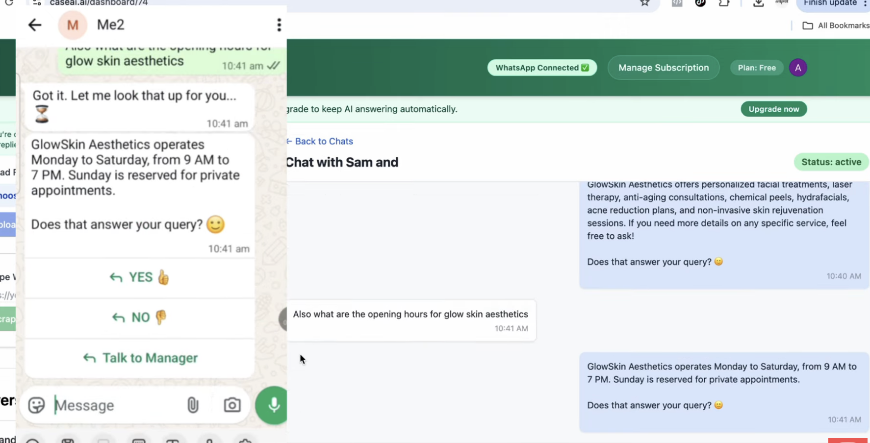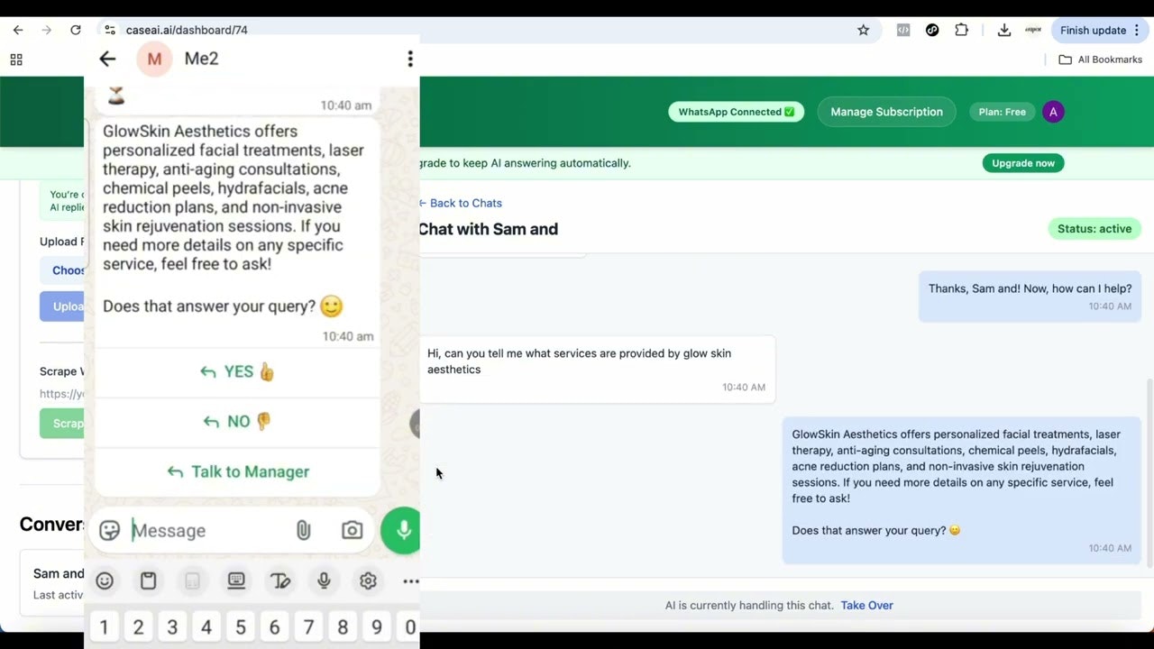 ## 概要 WhatsApp を AI 搭載のカスタマーサポートとリード獲得のチャネルへ変えるノーコードソリューション。WhatsApp接続・ナレッジベースのアップロード・AI自動応答・人間介入...