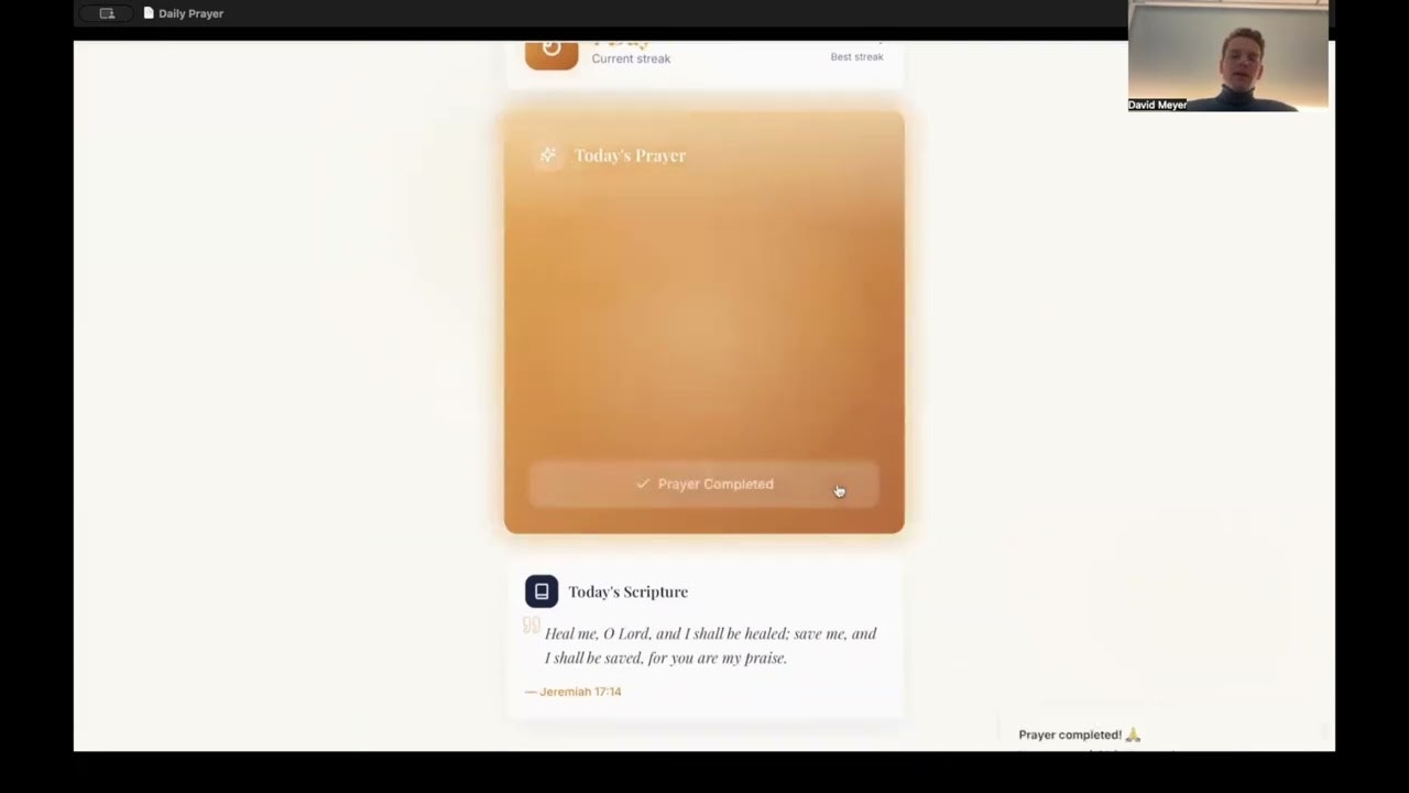 ##概要 Daily Prayerは、朝を明確さと目的意識で始めるための、あなた専用の祈りを提供します。設定した目標(キャリアの成長・人間関係の改善・内なる平和)に合わせてAIが祈りを生成。日々...