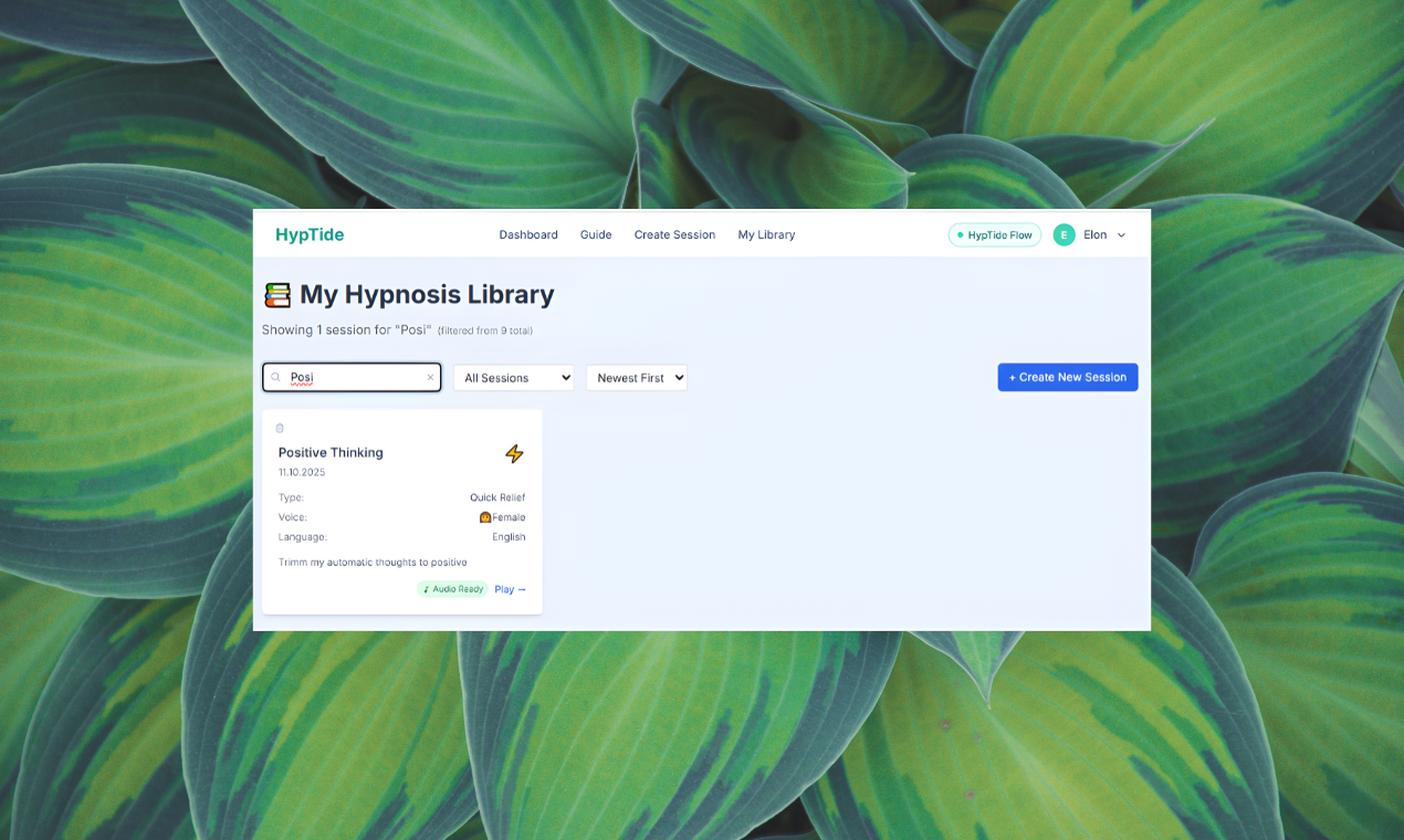 ##概要 HypTideは、睡眠・集中力・自信・落ち着きといった目標に合わせて、個別化された催眠セッションを生成するサービスです。高額で再聴不可の従来セッションの課題を解消し、数分で作成・好きな...